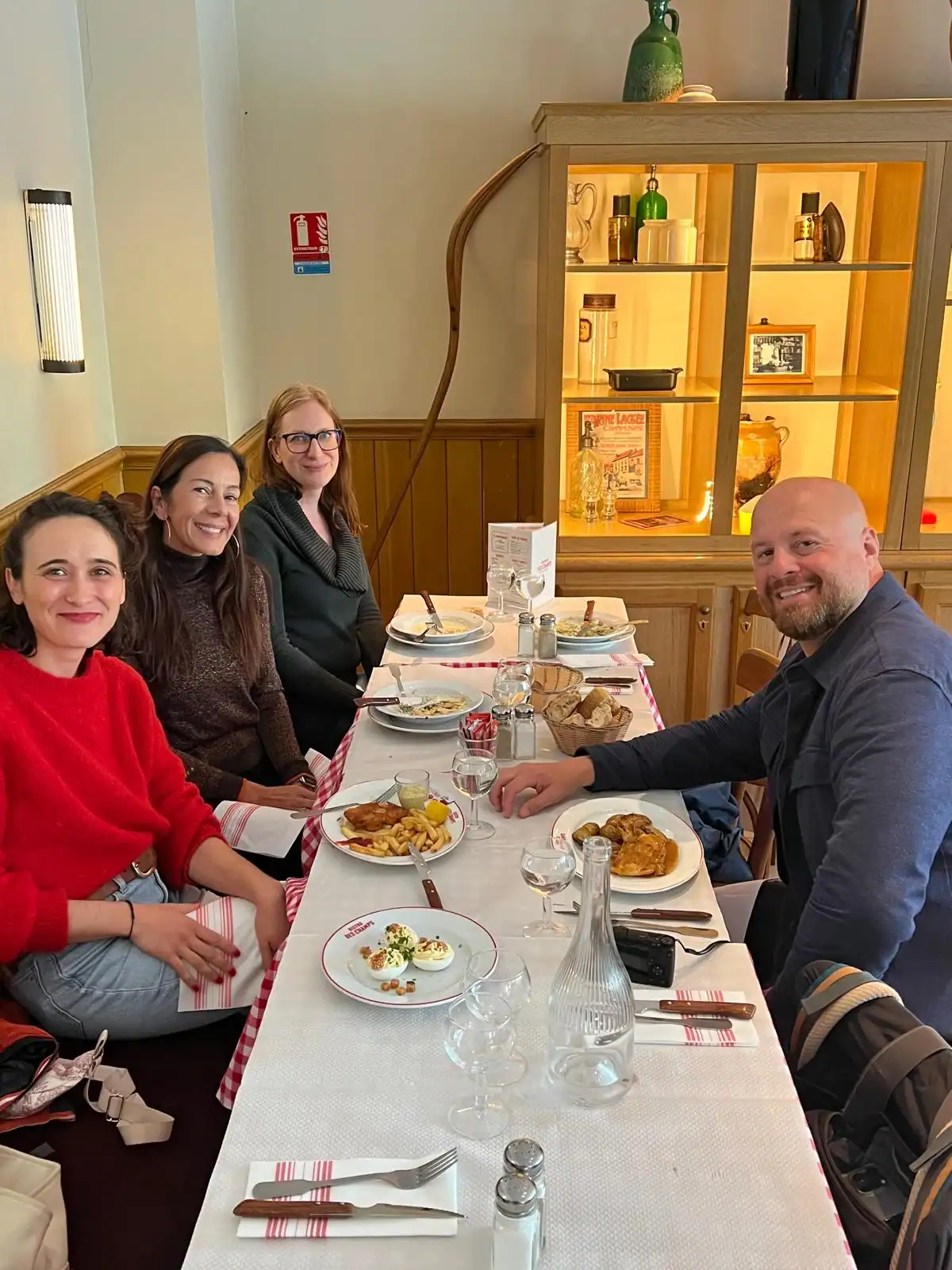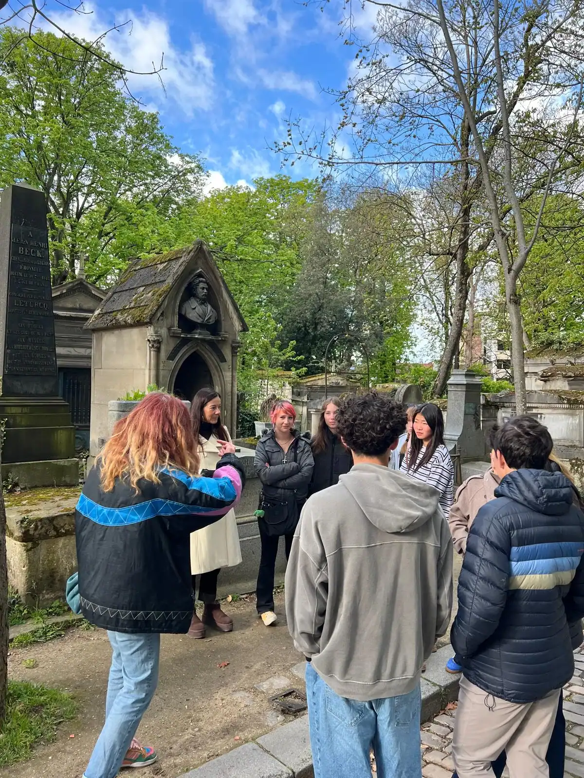 Today was one of the best days of the trip so far. We started at a cemetery, learning about several notable people buried there, including Oscar Wilde. There was also a story about a French “Romeo and Juliet,” which made the visit more engaging and memorable. After that, we took the metro to the Arc de Triomphe and had lunch at Brasserie des Champs, which was very good, I had the ravioli and it was very flavorful. Then we had some free time to walk along the Champs-Élysées. We tried macarons, and they were definitely worth it. Seeing the Arc de Triomphe up close was also impressive and much larger than we expected.