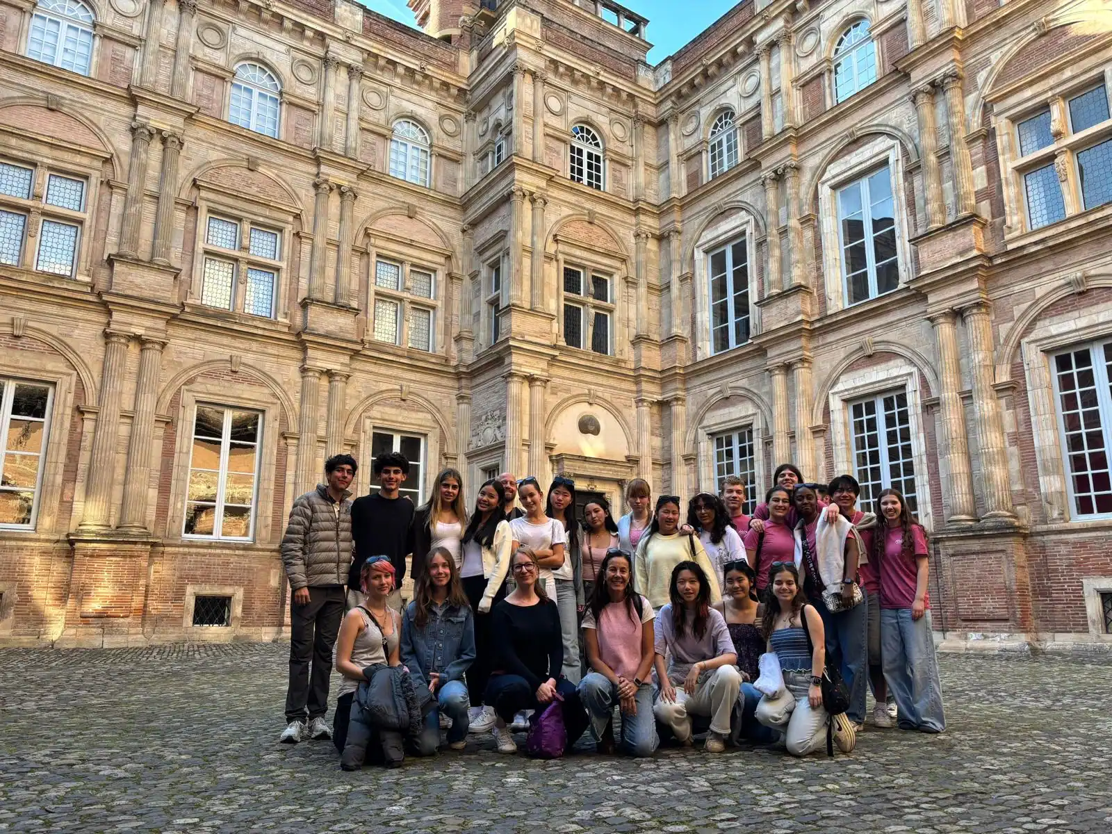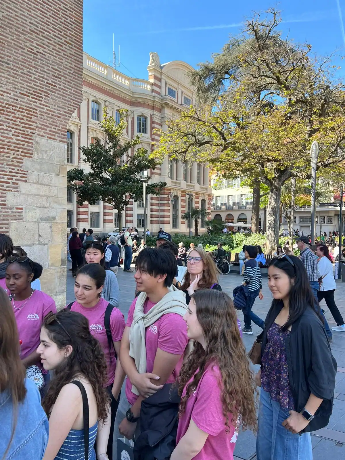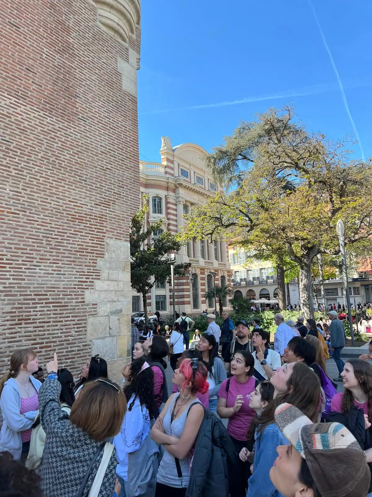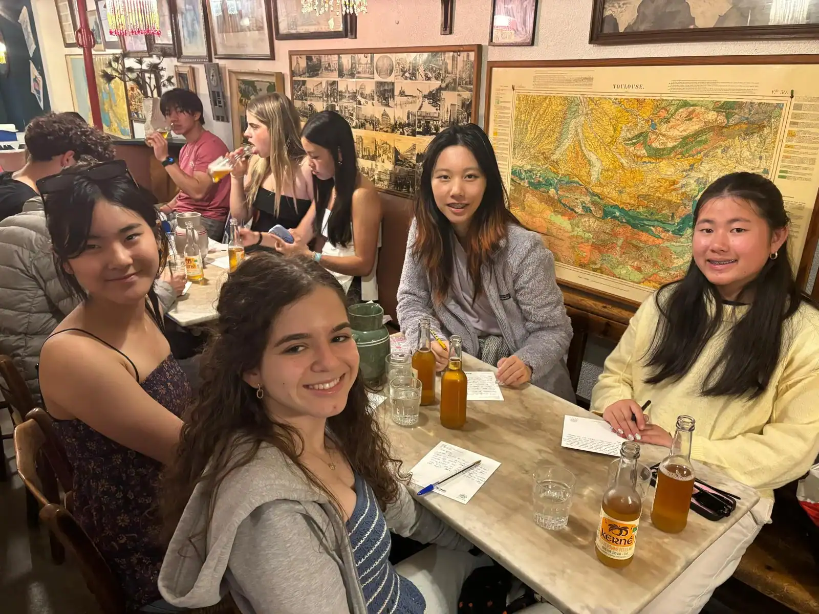 We started off our day on a bittersweet note, saying goodbye to our host families in Carcassonne, to start the full day ahead of us. After a short bus ride, we headed to La Grotte de Limousis to explore the ancient rock formations and impressive crystals through grand caverns and an immersive light show-c’était très magnifique! After, we ate a picnic packed by our wonderful host families and hopped on another bus off to Toulouse. When we arrived, the bustling streets and sounds of the city greeted us with open arms. Following dropping off our luggage at the hotel, we went to explore the city with our tour guide Elena and saw everything from kids skateboarding in a local park to a wedding. On the tour, we visited famous Toulousian monuments such as the Capitol building, a medieval church of the Jacobins, and an ancient house (Hôtel d’Assézat) with various intricately detailed carvings. Finally, after a bit of shopping and free time in the many department stores, small boutiques, and souvenir shops, we wrote letters to ourselves reflecting on our amazing adventures and all that we’ve learned, then we had a delicious dinner of crêpes. Just like our first night in Paris, a perfect circular ending to our trip! Overall, this has been an incredible experience that we’ll miss dearly! à demain!