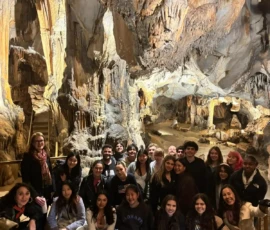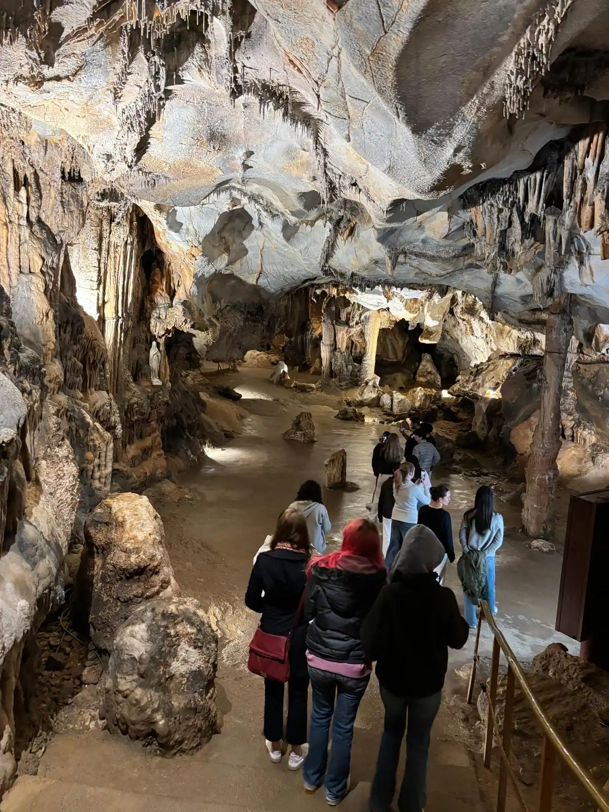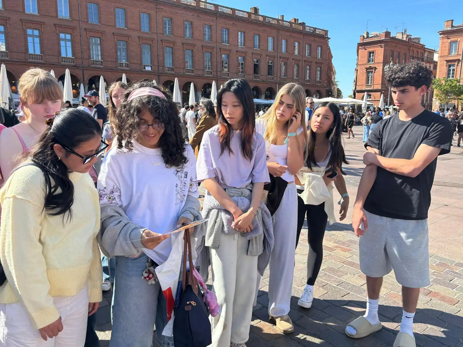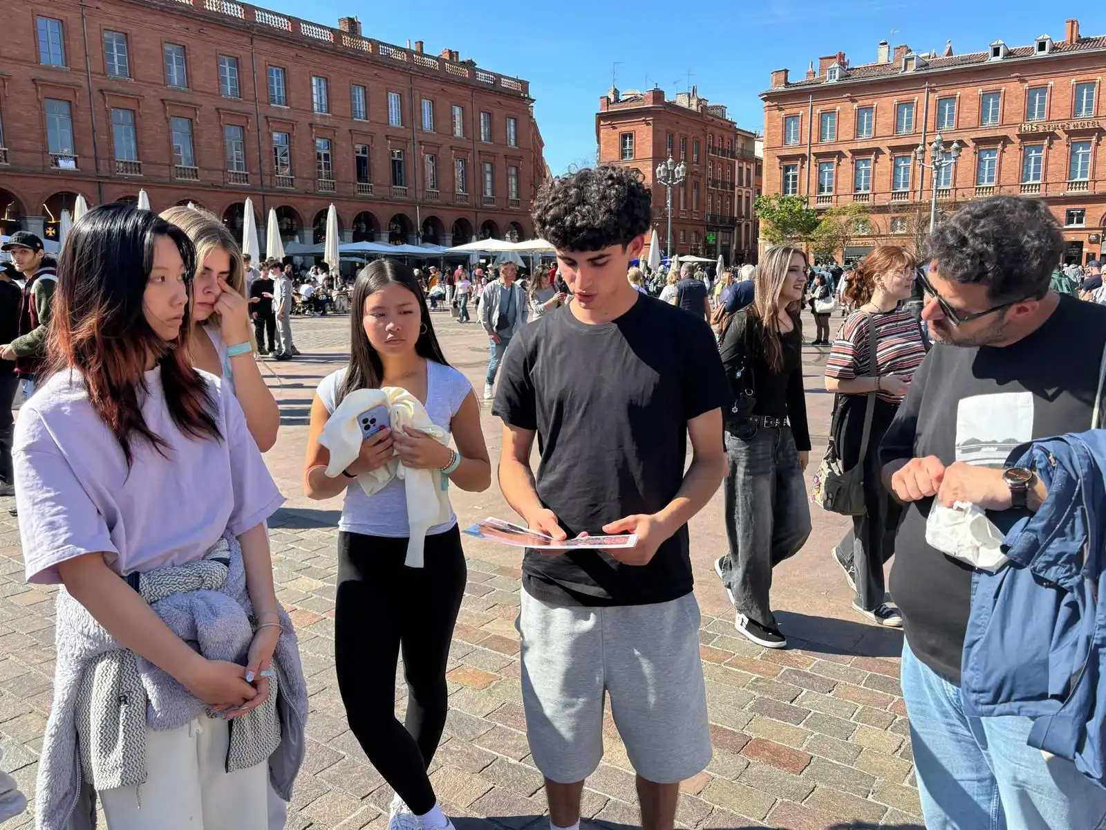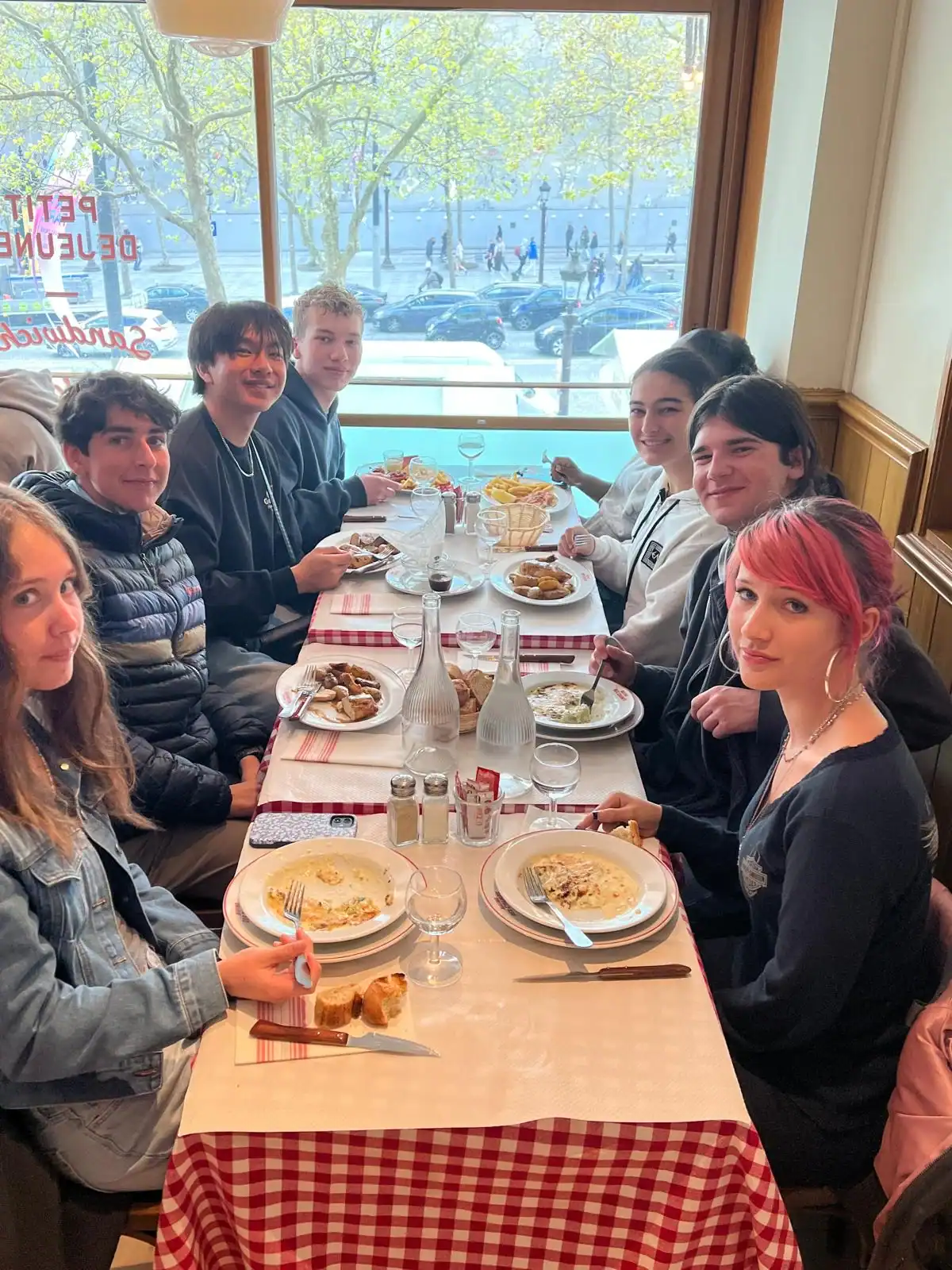 We started off our day on a bittersweet note, saying goodbye to our host families in Carcassonne, to start the full day ahead of us. After a short bus ride, we headed to La Grotte de Limousis to explore the ancient rock formations and impressive crystals through grand caverns and an immersive light show-c’était très magnifique! After, we ate a picnic packed by our wonderful host families and hopped on another bus off to Toulouse. When we arrived, the bustling streets and sounds of the city greeted us with open arms. Following dropping off our luggage at the hotel, we went to explore the city with our tour guide Elena and saw everything from kids skateboarding in a local park to a wedding. On the tour, we visited famous Toulousian monuments such as the Capitol building, a medieval church of the Jacobins, and an ancient house (Hôtel d’Assézat) with various intricately detailed carvings. Finally, after a bit of shopping and free time in the many department stores, small boutiques, and souvenir shops, we wrote letters to ourselves reflecting on our amazing adventures and all that we’ve learned, then we had a delicious dinner of crêpes. Just like our first night in Paris, a perfect circular ending to our trip! Overall, this has been an incredible experience that we’ll miss dearly! à demain!