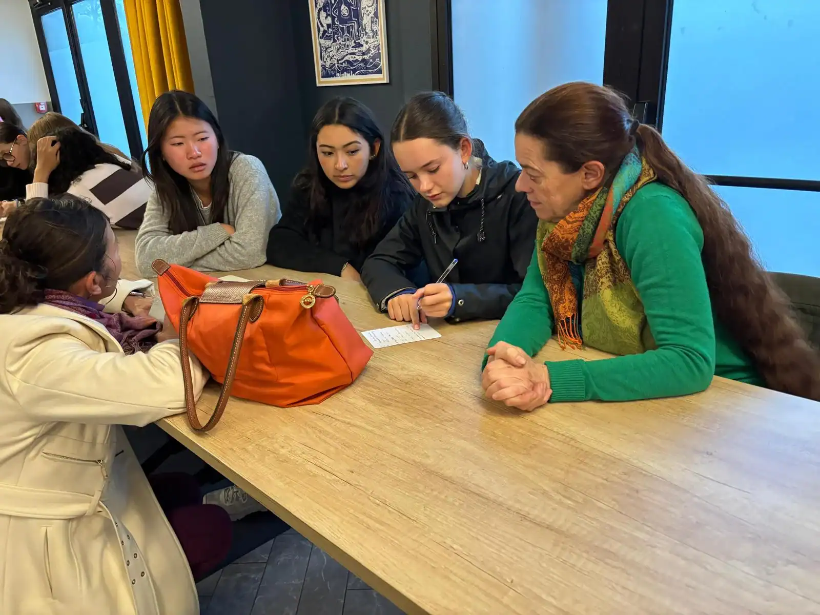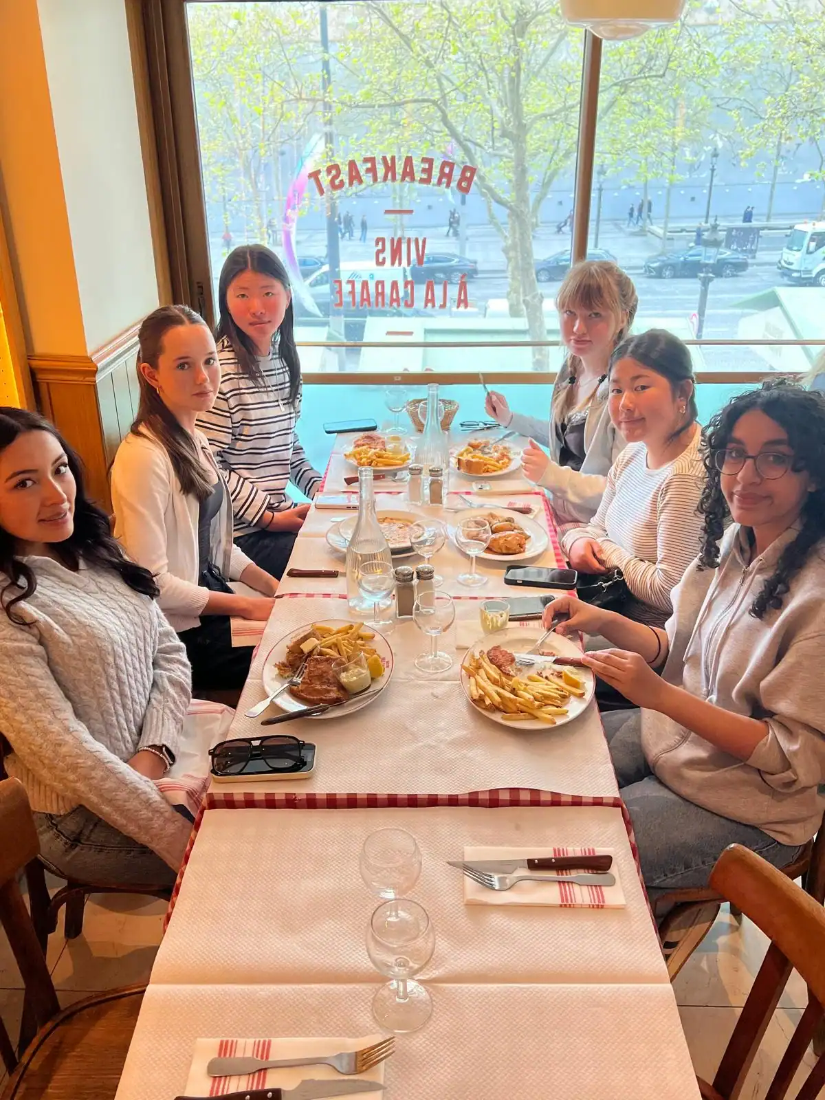 Later at the hotel, we did a group activity where we wrote our favorite memories from the trip so far and brainstormed questions to ask our host families (we meet them tomorrow we’re all really excited!). Some of our favorite memories included going to the Eiffel Tower and shopping along the Champs-Élysées.