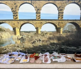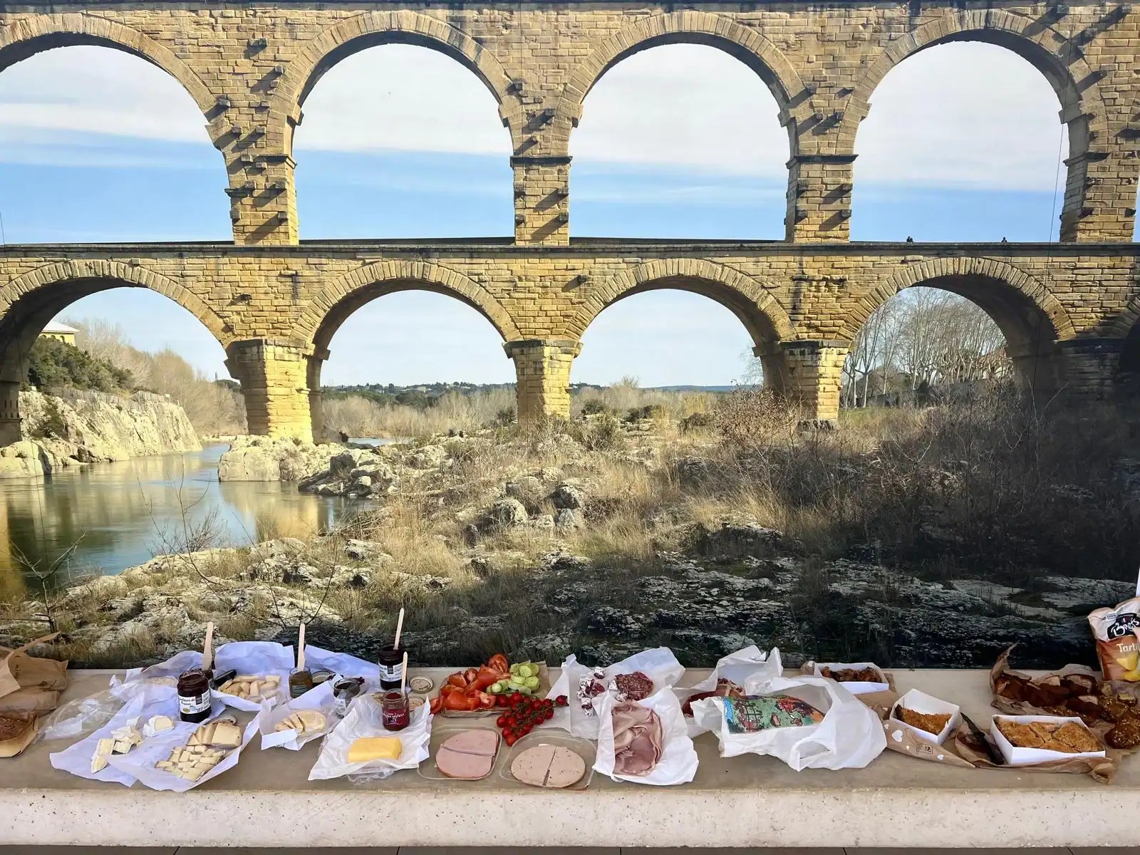 Today we woke up bright and early, ate breakfast and gathered our luggage. Together, we then went to the market to gather lunch. Each group of 3 was assigned a food category to shop for. Par exemple, bread, cheese, desserts, and more. After we collected the goods, we got on the bus to head to Pont du guard. At Pont du Gard, we started with the museum. There, we watched a movie, listened to audios, read the signs, and looked at the artifacts. We learned that it was built in the 1st century A.D, so very very old. We also met a cute little dragonfly! Afterwards, we had a little picnic, but the wind was crazy strong. It literally blew away all the food and wrappers which made clean up a little harder. Despite this, all the food was so delicious. After this, we took a little hike and saw the aqueduct! As said before, it was super windy, but we still had an amazing time.
