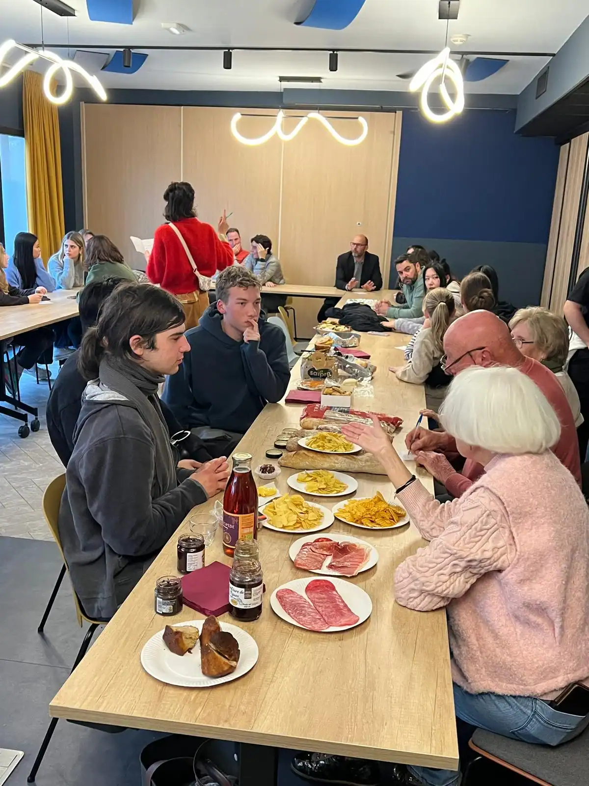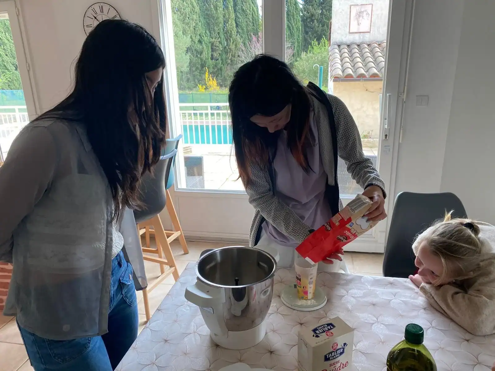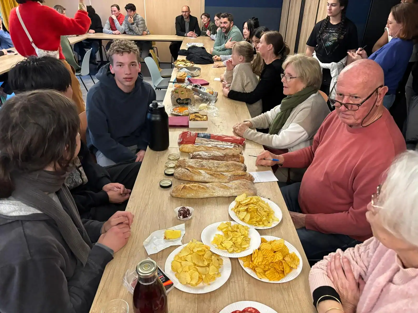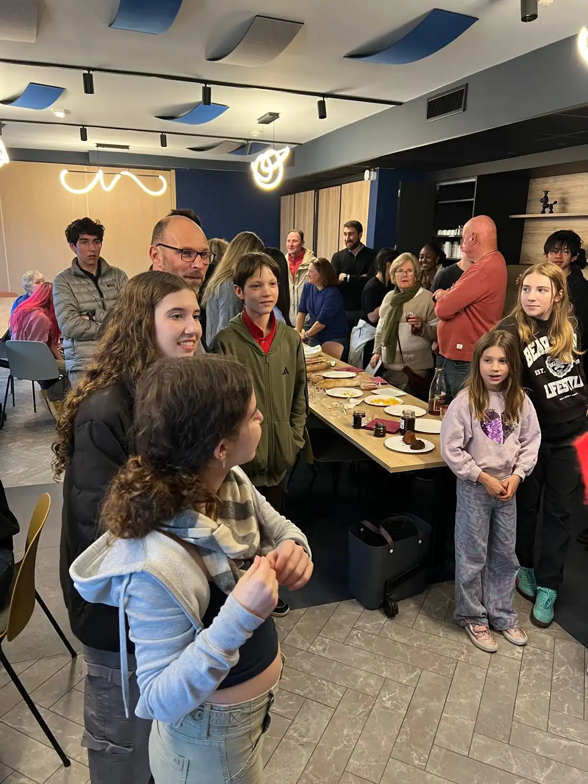 We then walked to our bus, and took a 3 hour bus ride to Carcassonne to go meet our host families! We mainly slept or watched movies on the bus. When we finally arrived, it was raining really hard and we had to rush to our hotel with our luggage. In the hotel, there was a potluck and our individual groups were able to meet the host families. We all shared food our families brought while playing trivia. There was a tie, and the tiebreaker was guessing french and american songs. After that, we all individually drove to our host families houses, got a house tour, and ate dinner together while asking questions and getting to know more about each other. The night ended with us playing games and hanging out together with our new families as we went to bed. À bientôt!