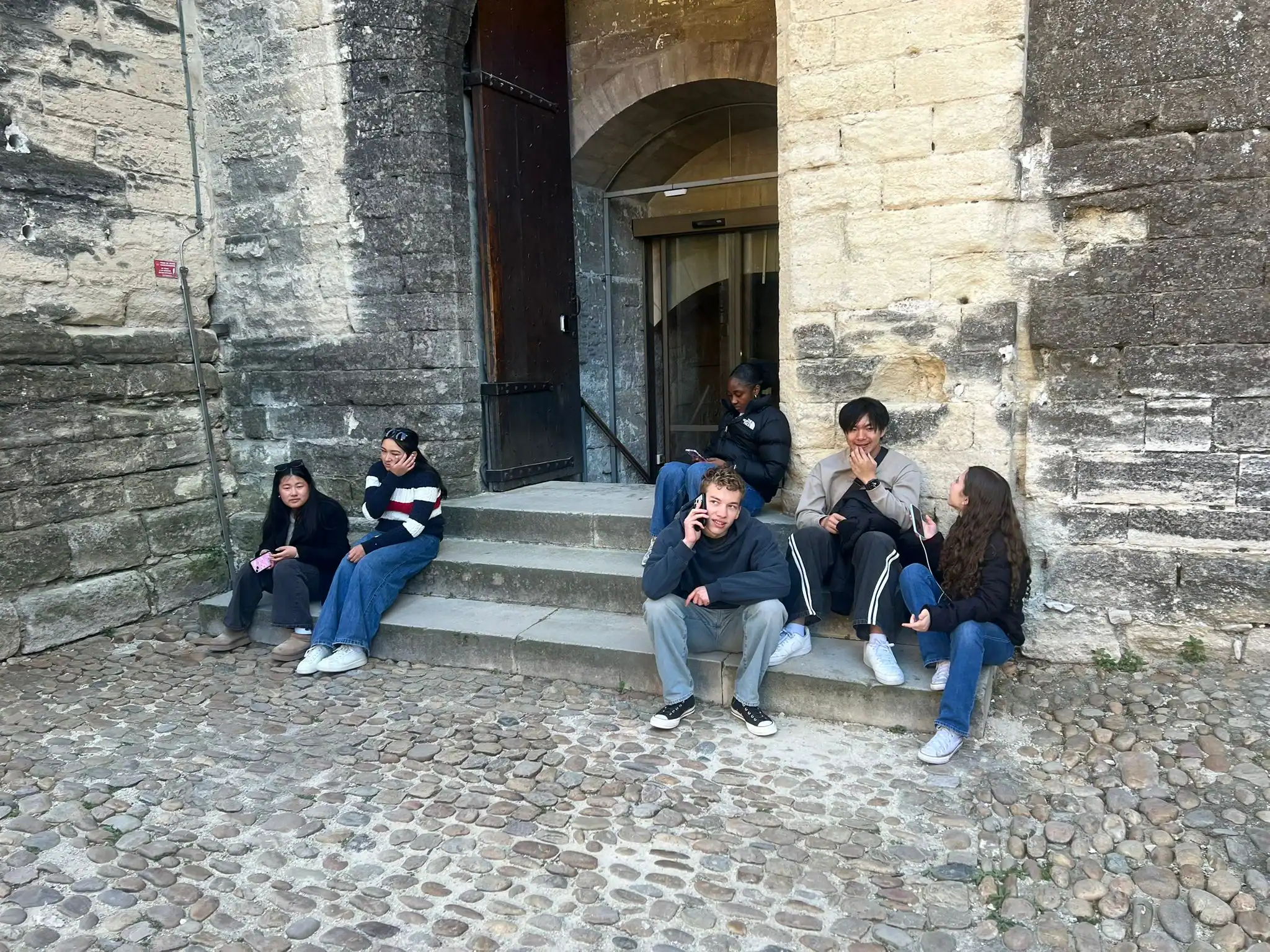 When we arrived, we took a bus to our hotel, settled in for a bit, and then headed out to explore the central city. We visited the Palace of the Popes, which was super cool and really historic. While we were there, we saw a group of French elementary school students, and one of them randomly came up to us and asked, “Do you know 67?” which is a funny joke among us teenagers in america.