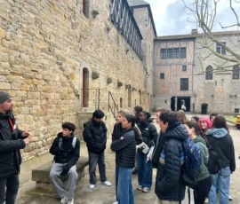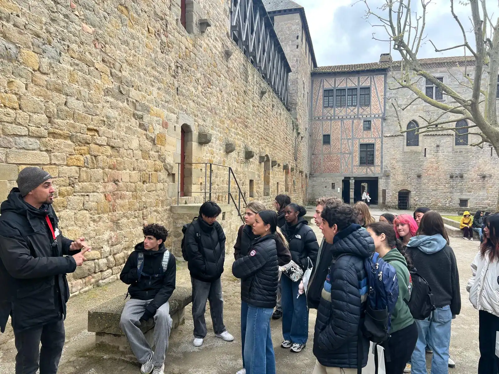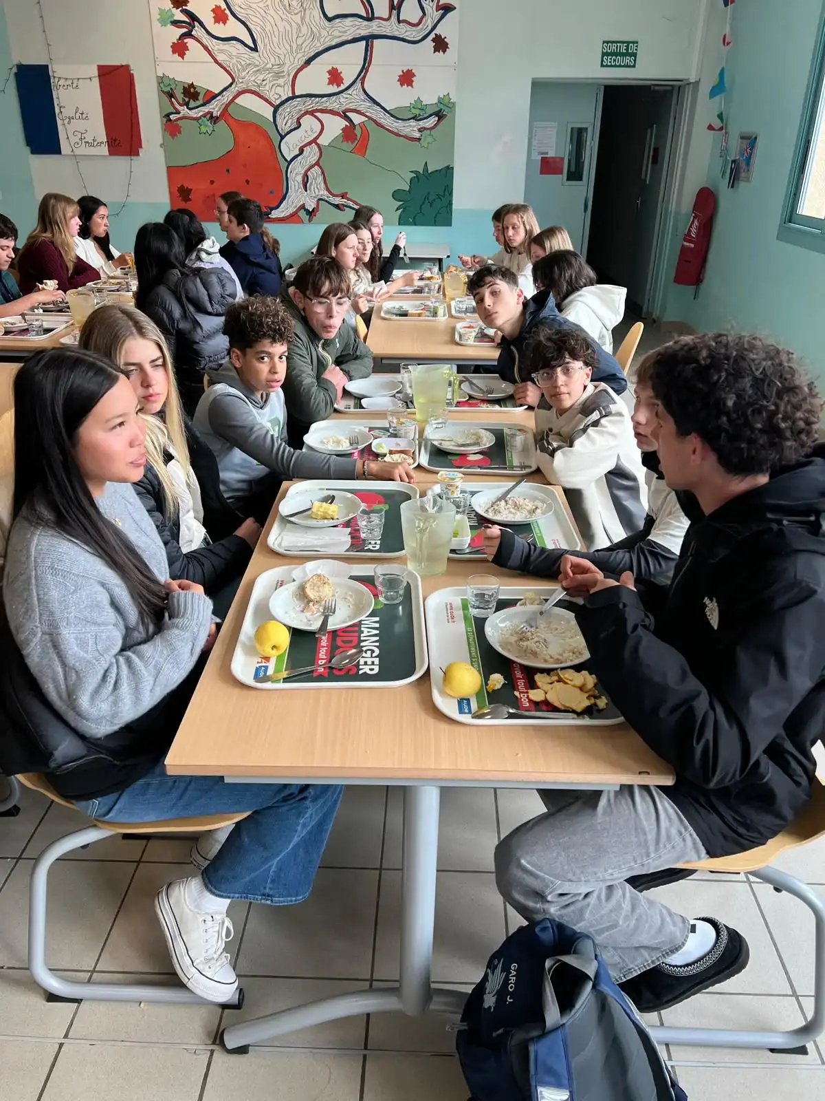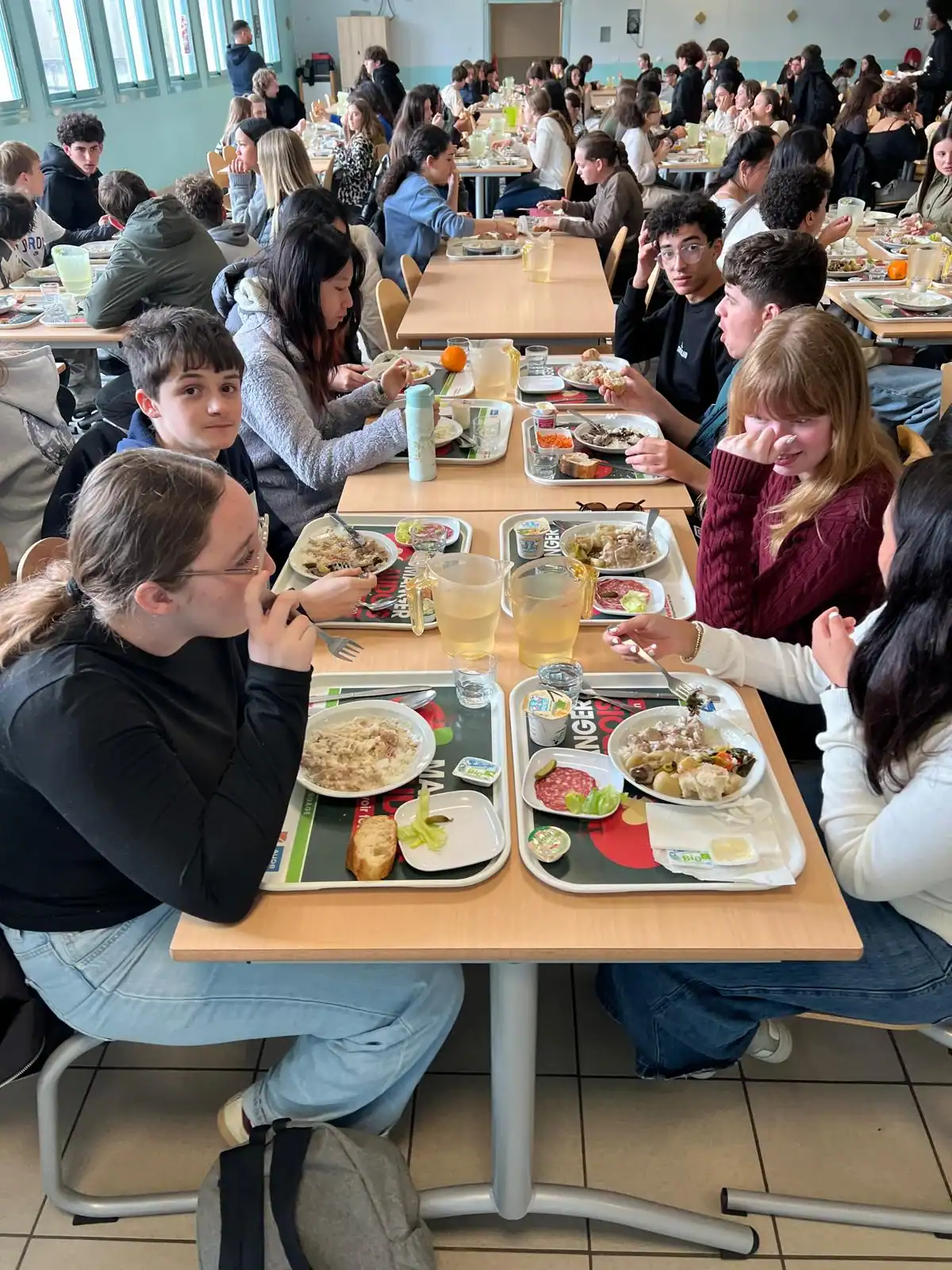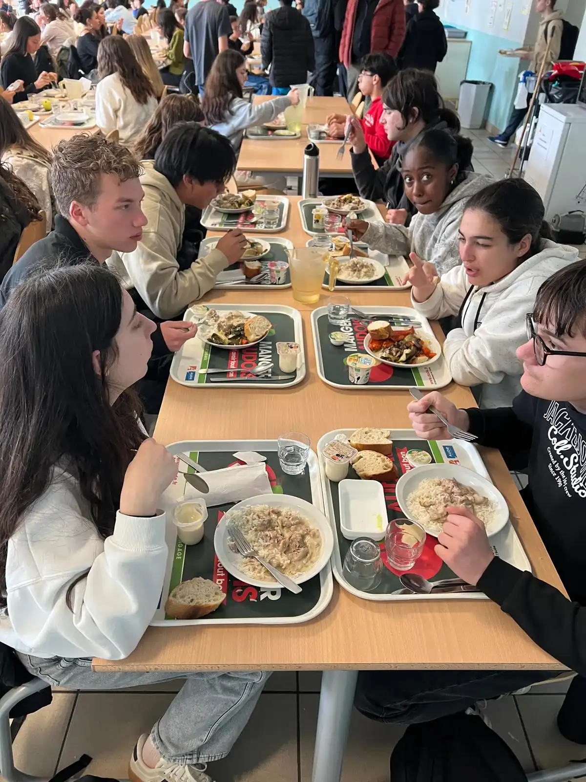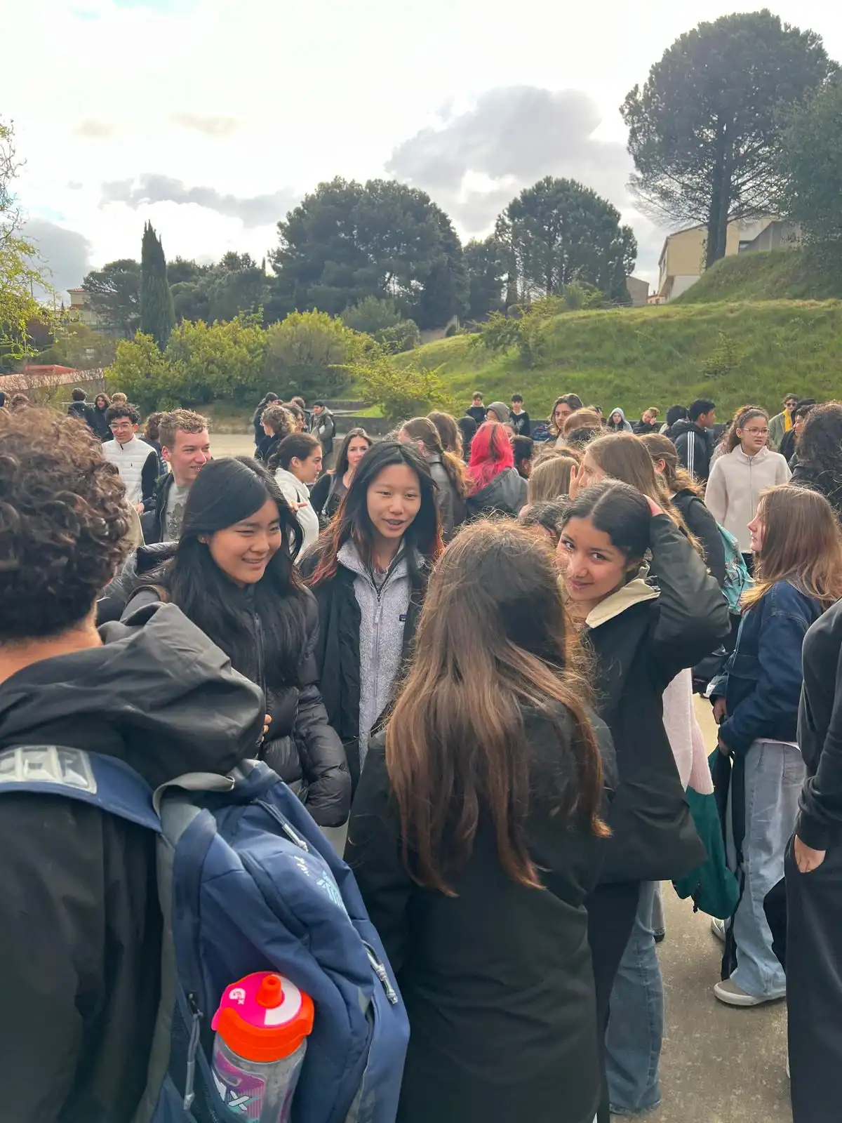 Today we visited a middle school in Carcasonne. The school day consisted of attending different classes that included French, English, Latin, History, Spanish and Math. In history class we learned about 9/11 and Picasso’s art during the Korean war. In English, we were interviewed by the French students and every few minutes we switch tables to meet new kids. It was like an interview circuit. In Latin, we learned about the Greek and Roman gods, their symbols, and what they are the god of. We had chicken, rice and yogurt for lunch in the cafeteria where we ate with the middle schoolers. All of them loved saying 67 and they also stared at us a lot. They played the national anthem every time there was supposed to be a bell to switch classes and there was a welcome sign with the American flag and the Statue of Liberty on a TV screen. Afterwards, we went to La Bastide the city center and got small pastries and had some shopping time to buy souvenirs and look at the different boutiques and different stores. After, La Bastide we walked to La Cité and met up with our host families and went home with them.