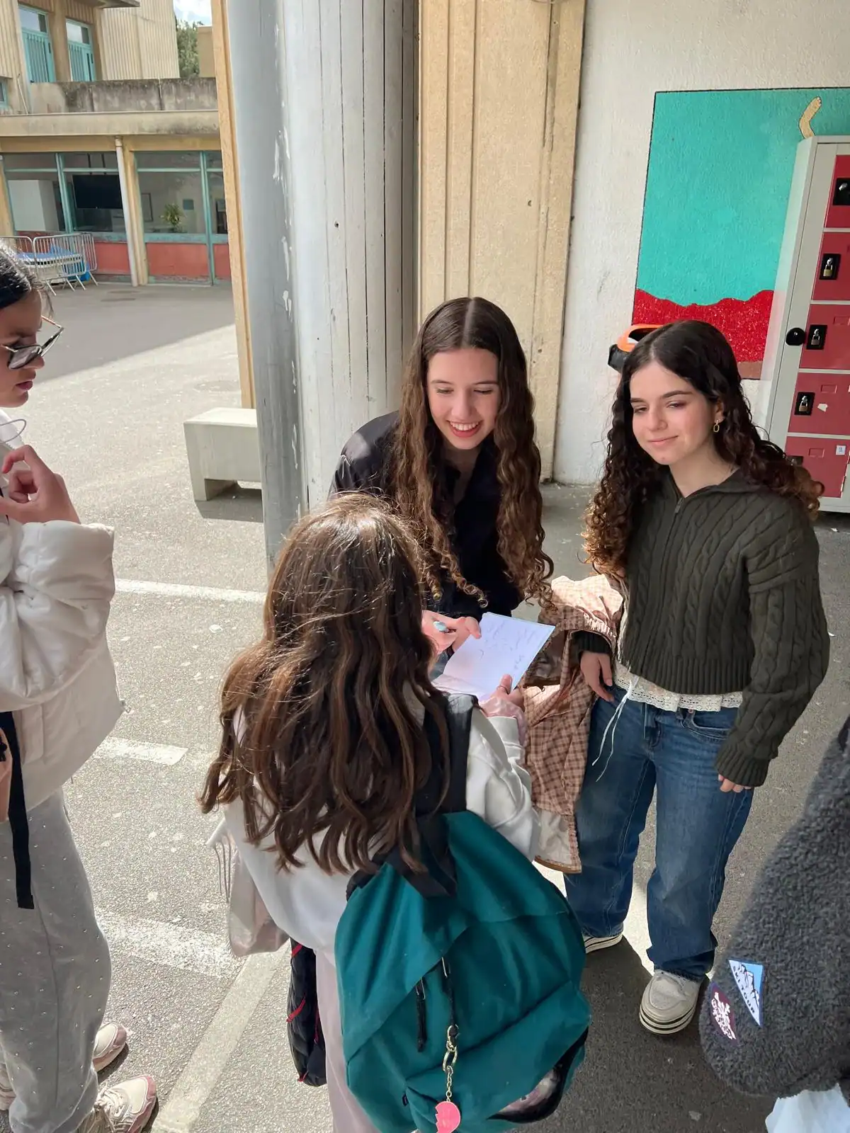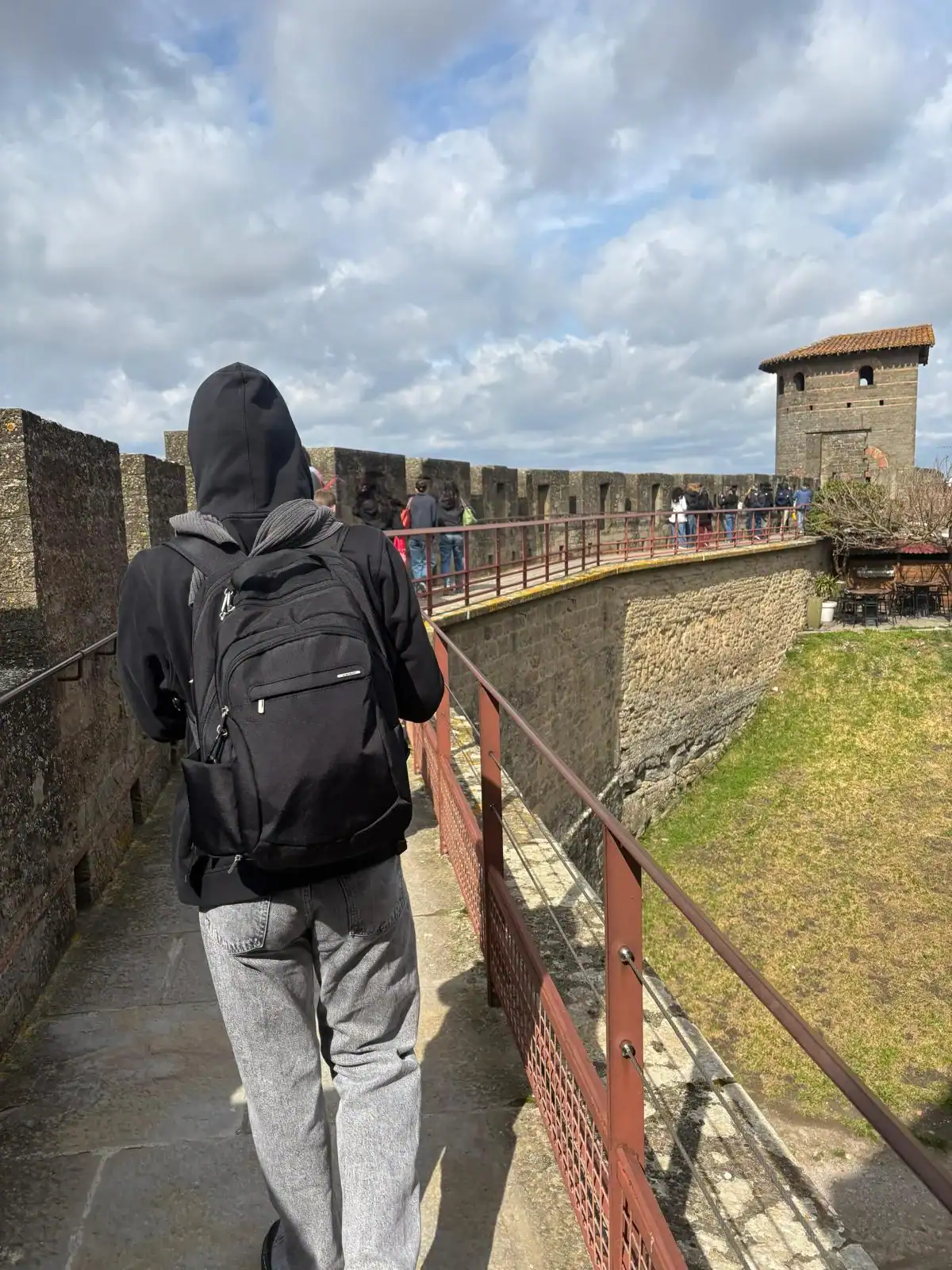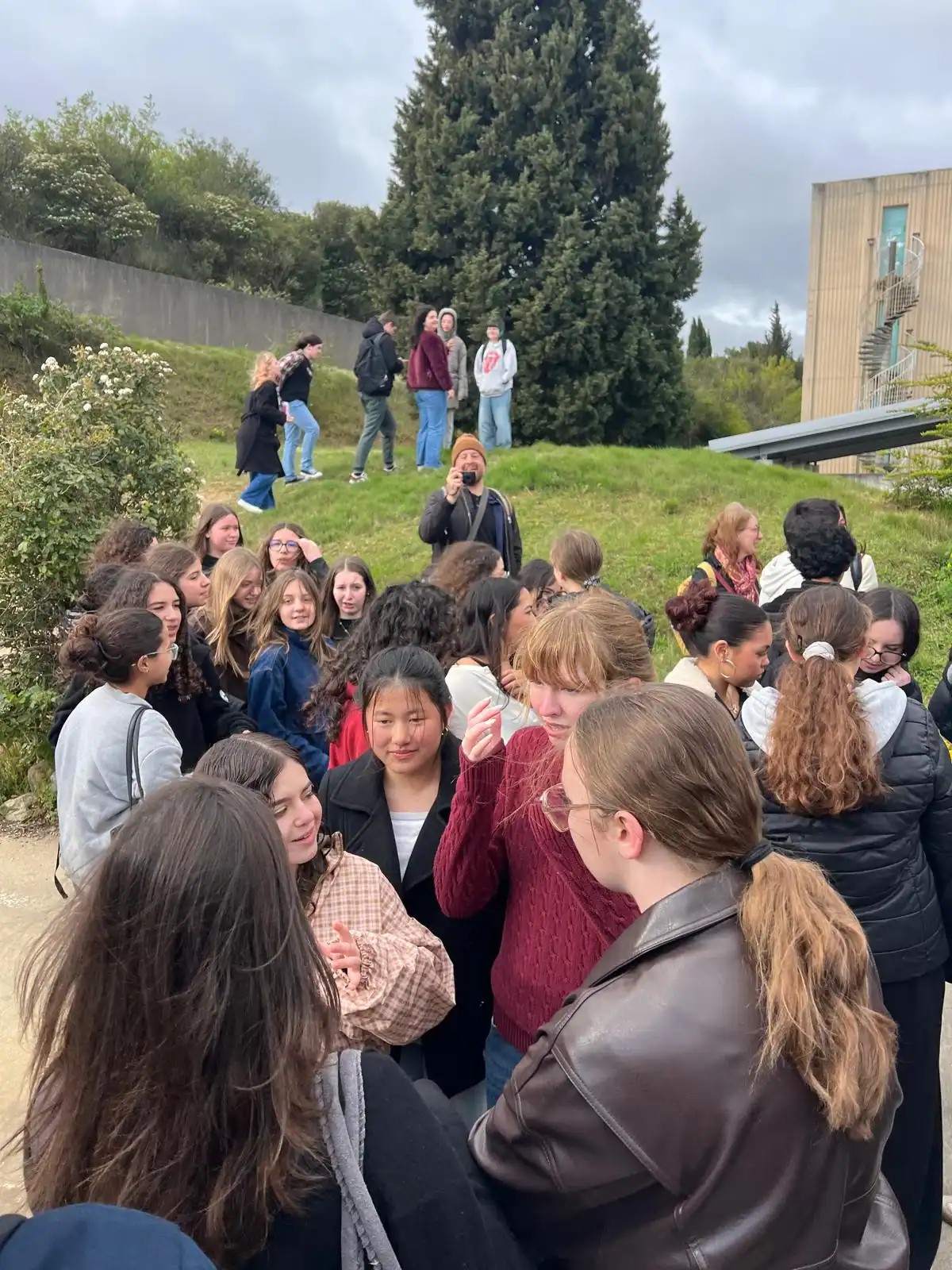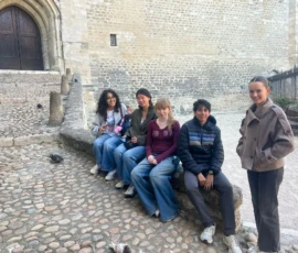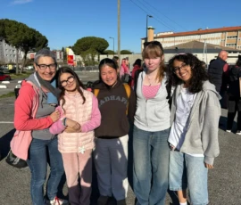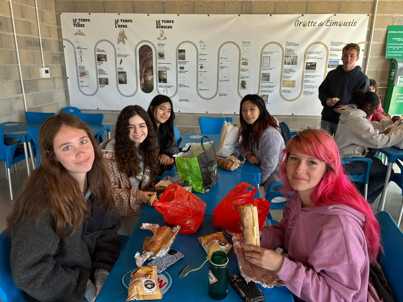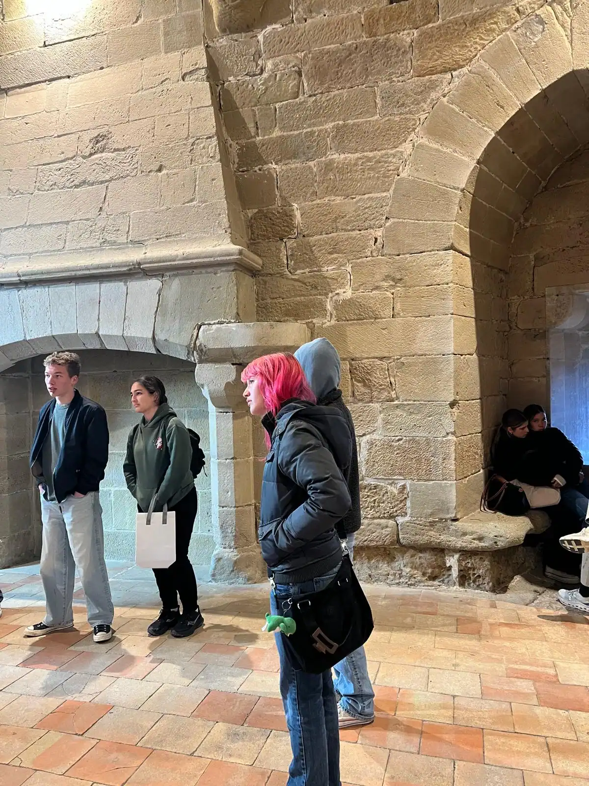 Today we visited a middle school in Carcasonne. The school day consisted of attending different classes that included French, English, Latin, History, Spanish and Math. In history class we learned about 9/11 and Picasso’s art during the Korean war. In English, we were interviewed by the French students and every few minutes we switch tables to meet new kids. It was like an interview circuit. In Latin, we learned about the Greek and Roman gods, their symbols, and what they are the god of. We had chicken, rice and yogurt for lunch in the cafeteria where we ate with the middle schoolers. All of them loved saying 67 and they also stared at us a lot. They played the national anthem every time there was supposed to be a bell to switch classes and there was a welcome sign with the American flag and the Statue of Liberty on a TV screen. Afterwards, we went to La Bastide the city center and got small pastries and had some shopping time to buy souvenirs and look at the different boutiques and different stores. After, La Bastide we walked to La Cité and met up with our host families and went home with them.