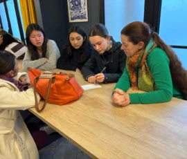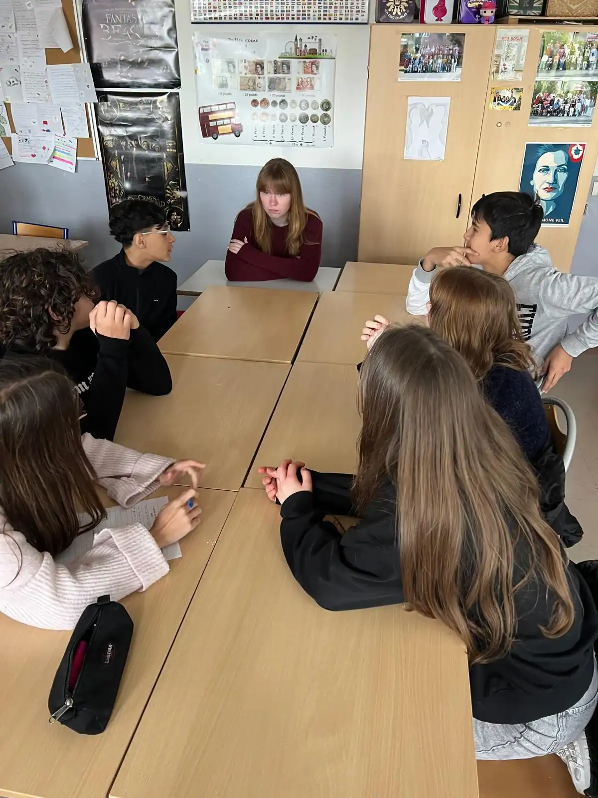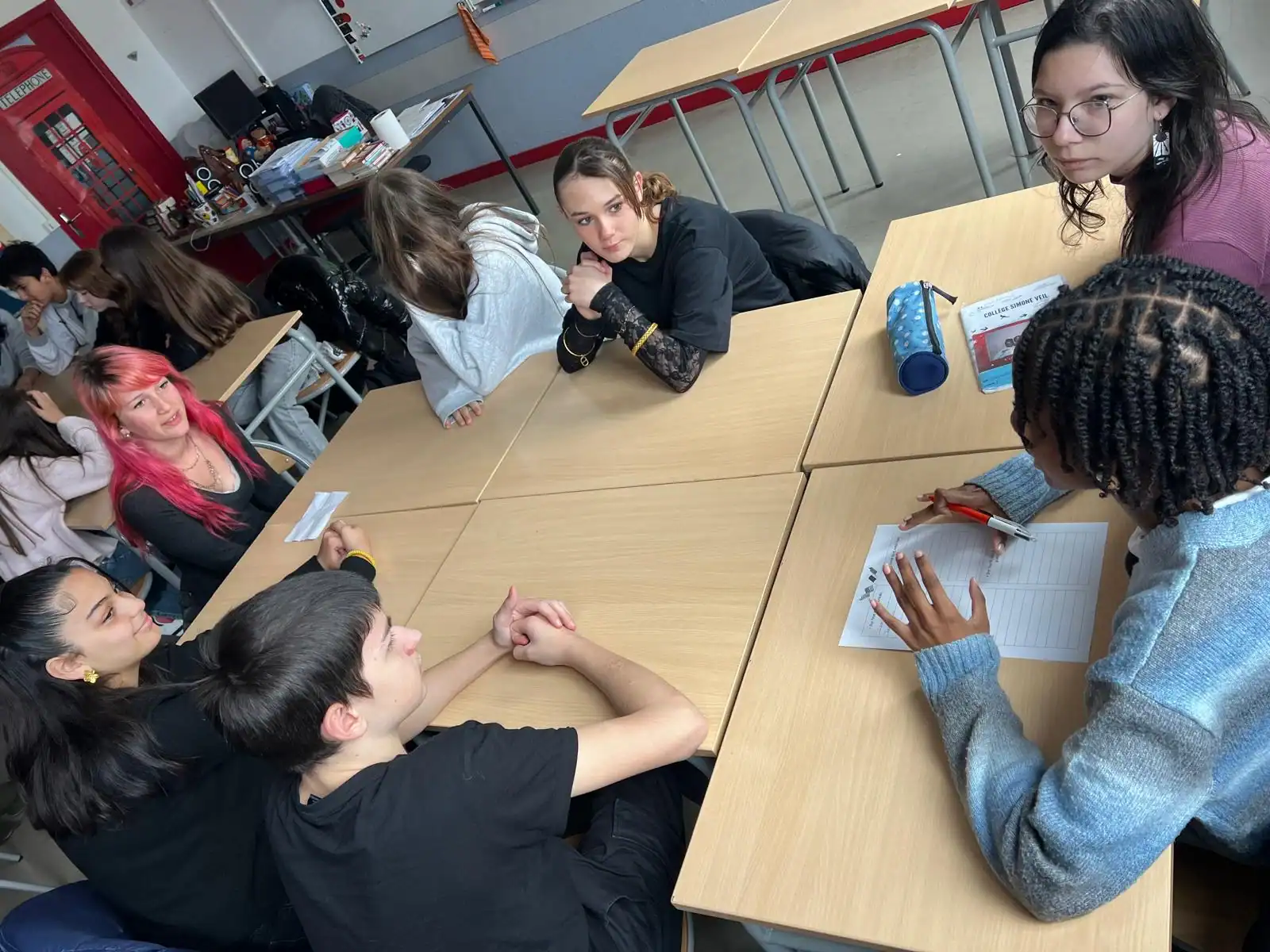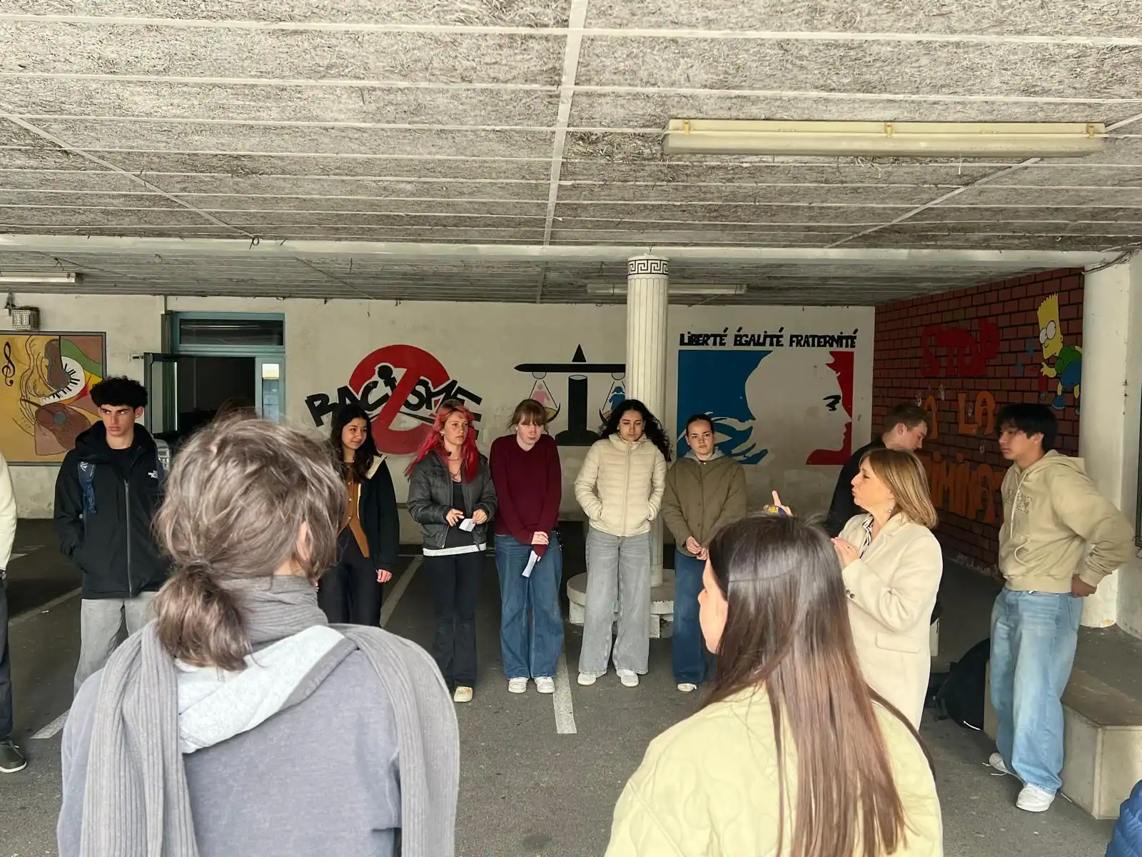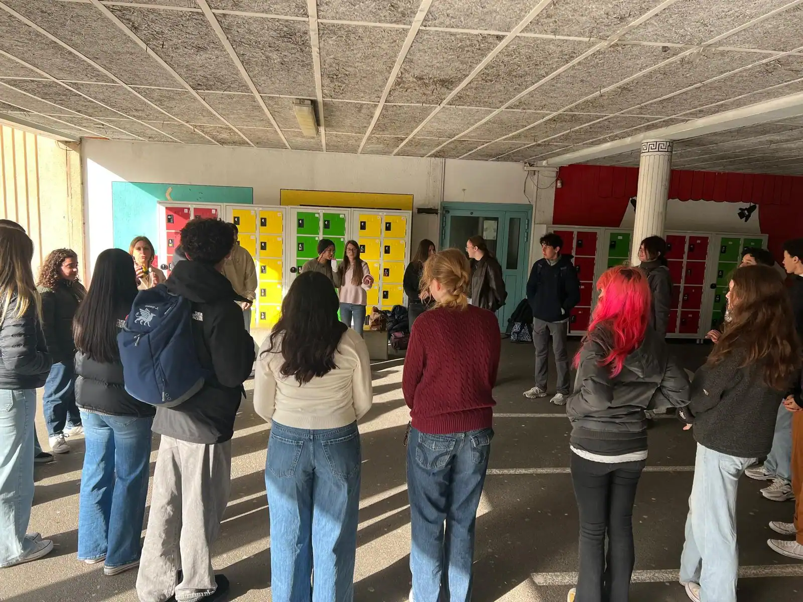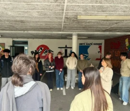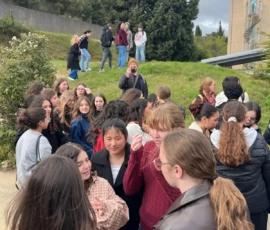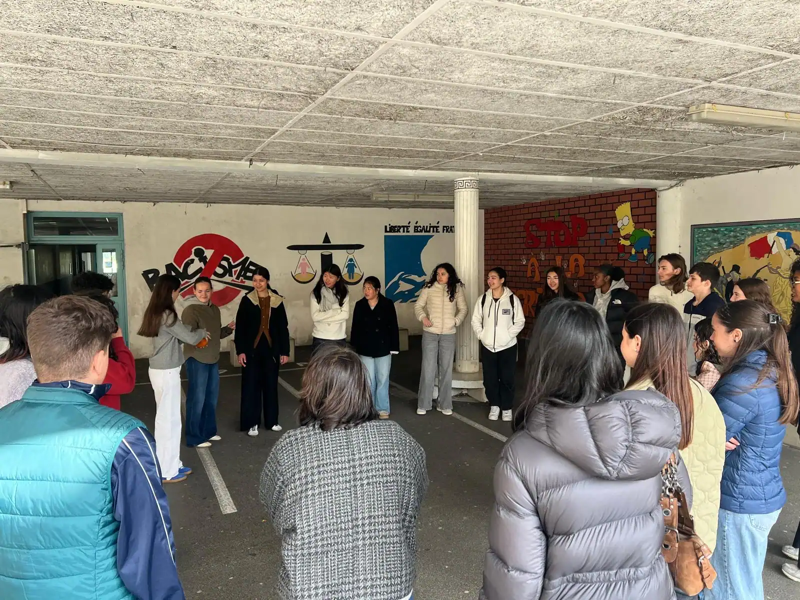 Today we visited a middle school in Carcasonne. The school day consisted of attending different classes that included French, English, Latin, History, Spanish and Math. In history class we learned about 9/11 and Picasso’s art during the Korean war. In English, we were interviewed by the French students and every few minutes we switch tables to meet new kids. It was like an interview circuit. In Latin, we learned about the Greek and Roman gods, their symbols, and what they are the god of. We had chicken, rice and yogurt for lunch in the cafeteria where we ate with the middle schoolers. All of them loved saying 67 and they also stared at us a lot. They played the national anthem every time there was supposed to be a bell to switch classes and there was a welcome sign with the American flag and the Statue of Liberty on a TV screen. Afterwards, we went to La Bastide the city center and got small pastries and had some shopping time to buy souvenirs and look at the different boutiques and different stores. After, La Bastide we walked to La Cité and met up with our host families and went home with them.