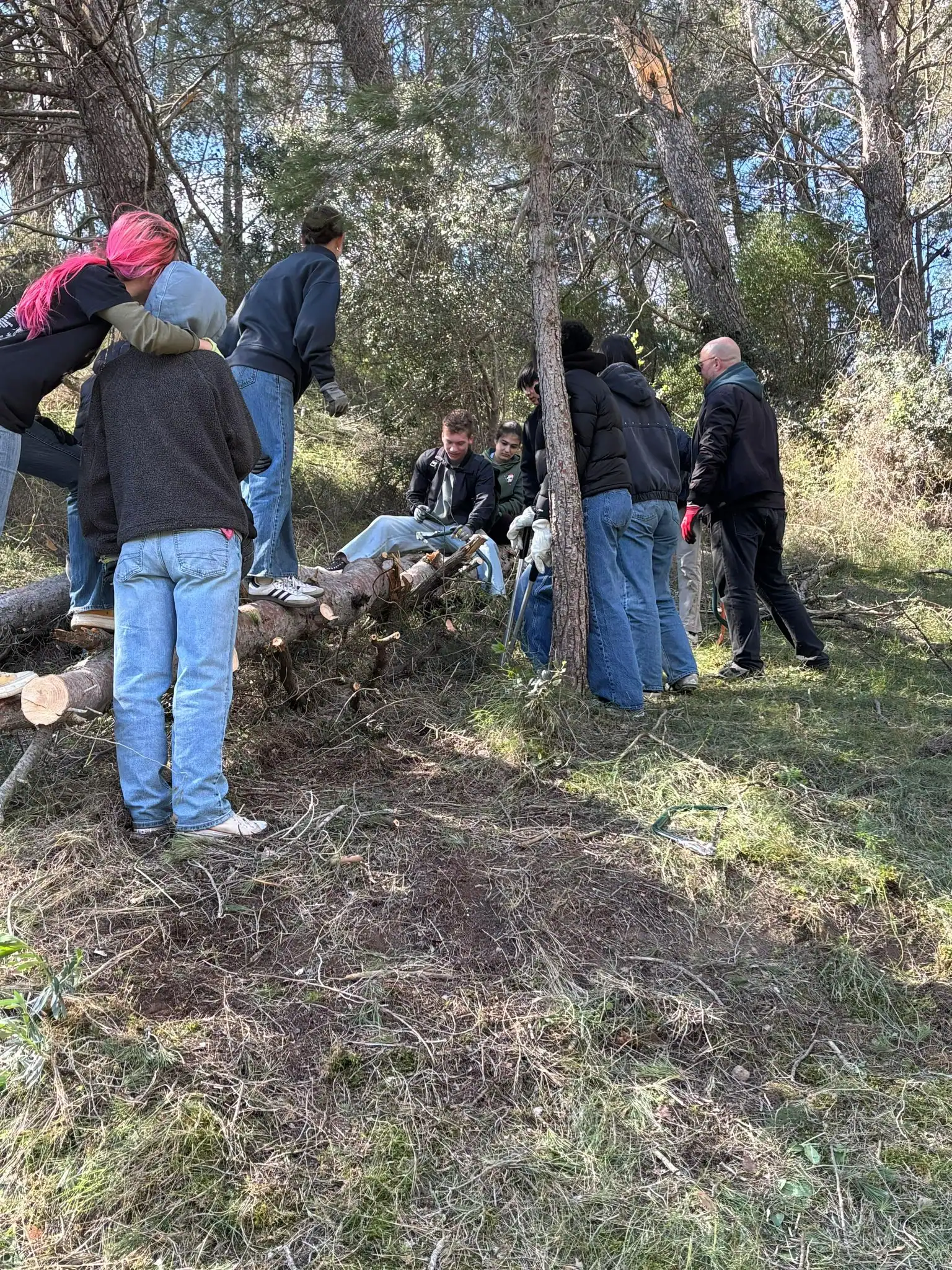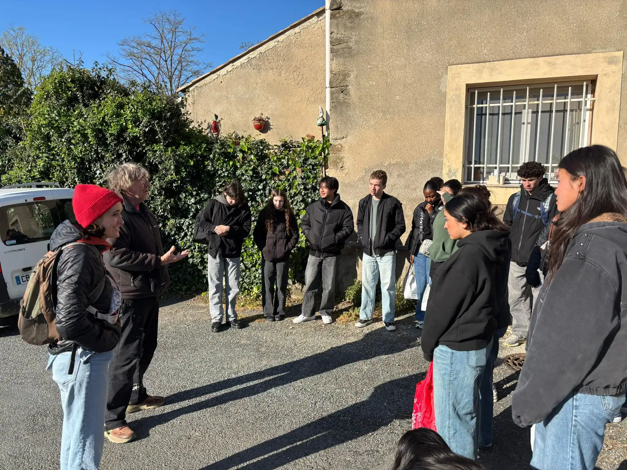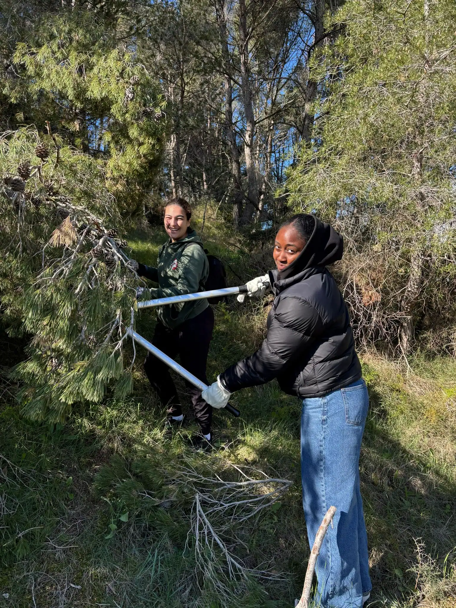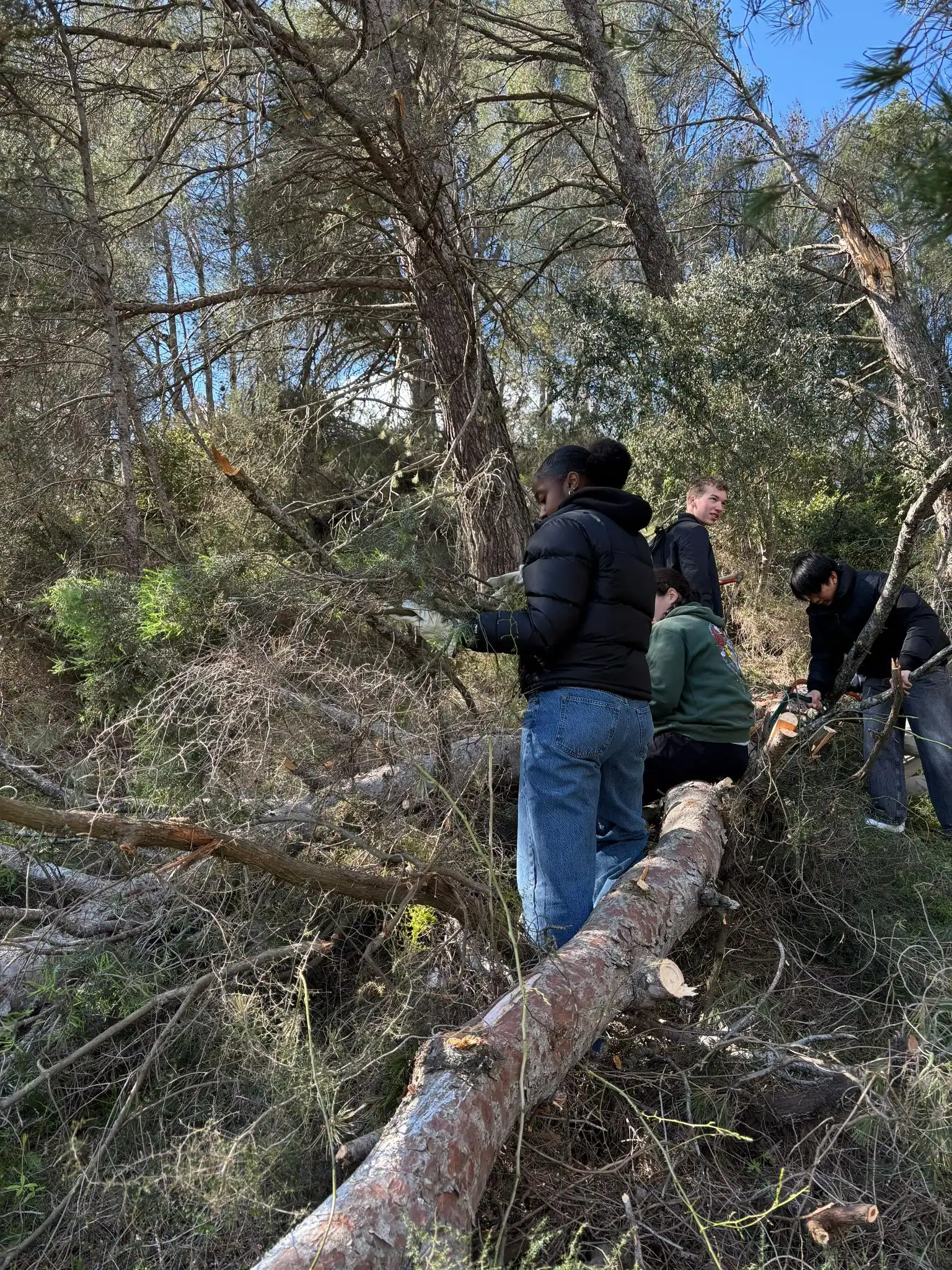 Today, we woke up in our host families homes after spending our first night with them. We enjoyed a nice breakfast with our families before saying goodbye to do some community service work! We went to the Chemin du Compostelle where we did some trail maintenance. We cut up felled trees using saws and pruners and put the branches into a large pile for removal. We worked very hard and did even more than we were supposed to because we got so into the project. Then, we went to La Cité, which is an incredibly preserved castle from the middle ages. There can be found mosaics from the ancient Romans, and crepes from the French! After our journey through time, we enjoyed a dinner made by our host families. Yummy! We miss our real families very much.