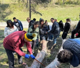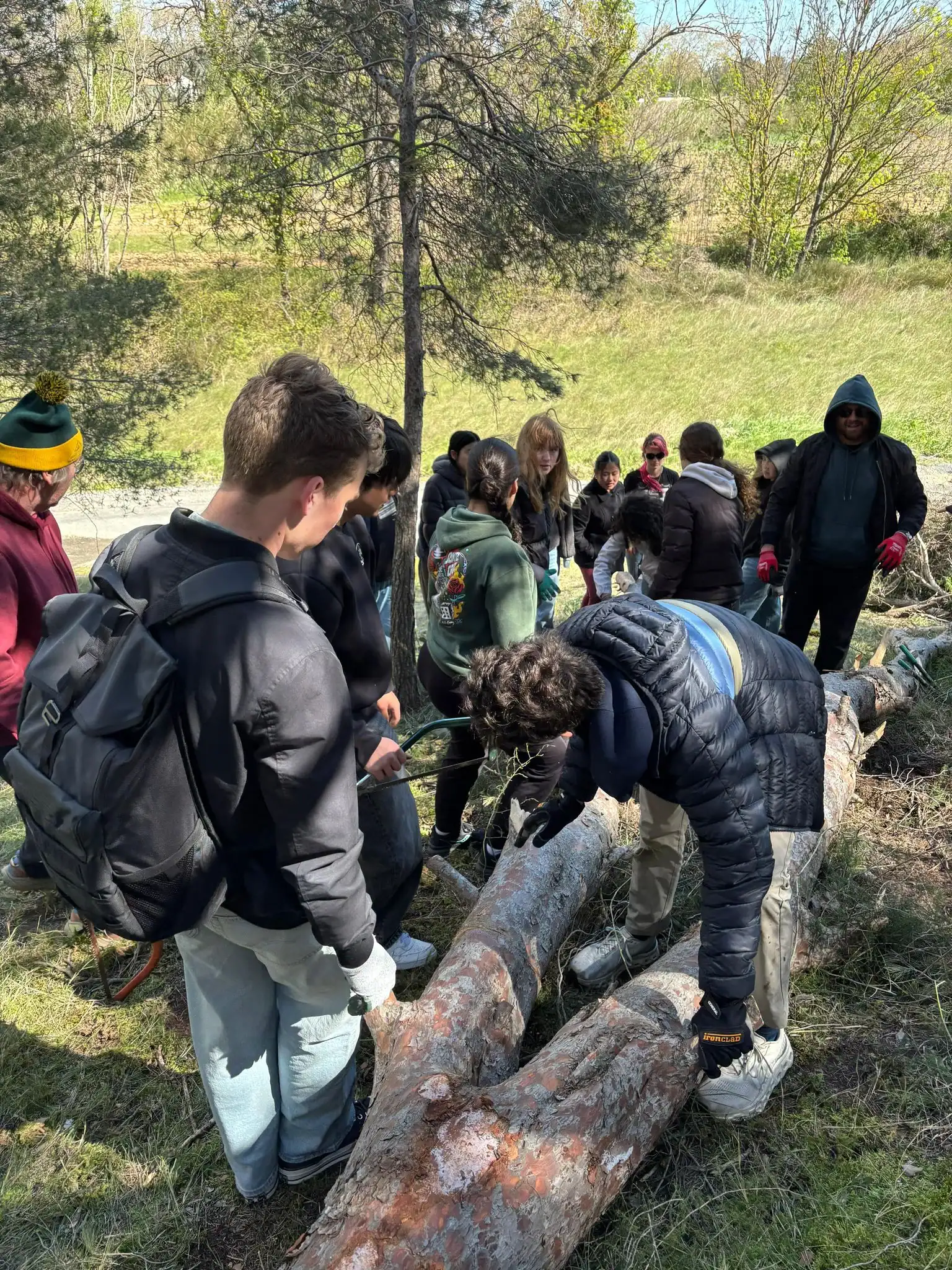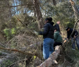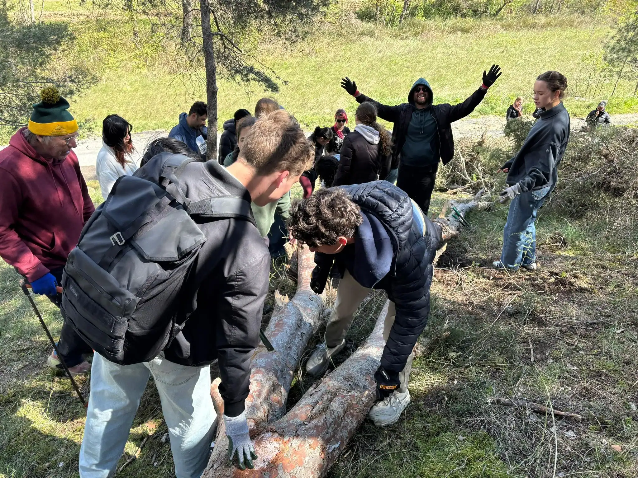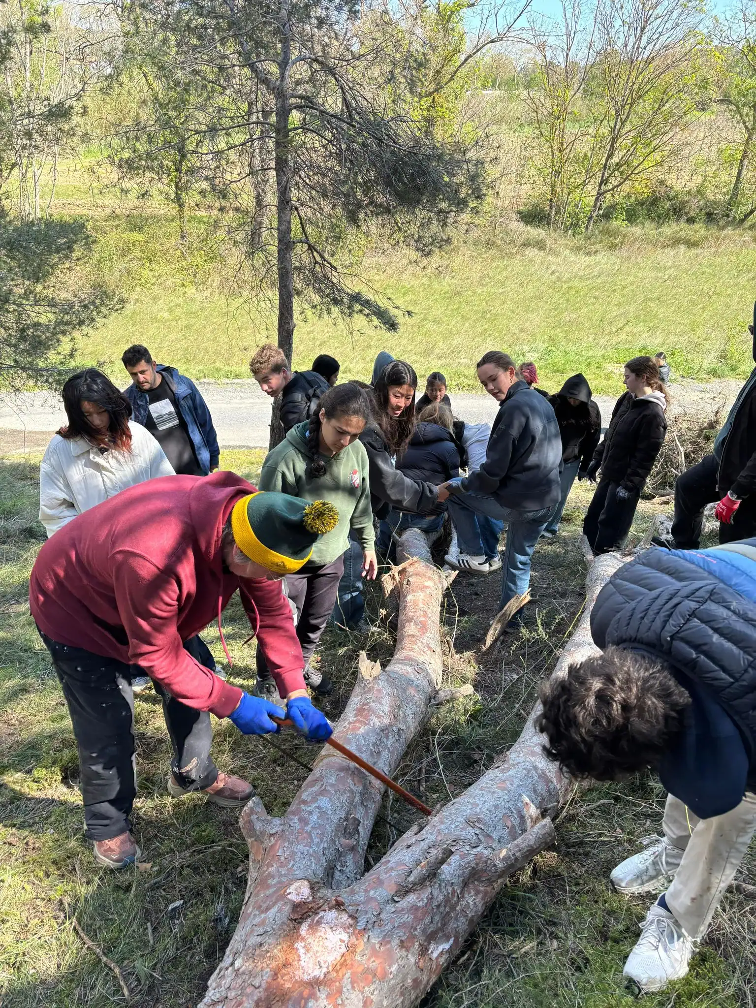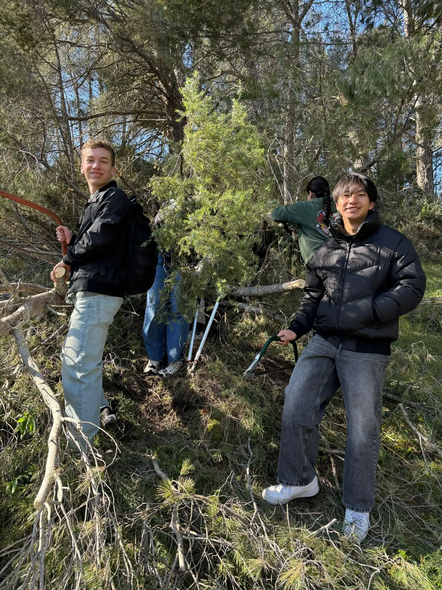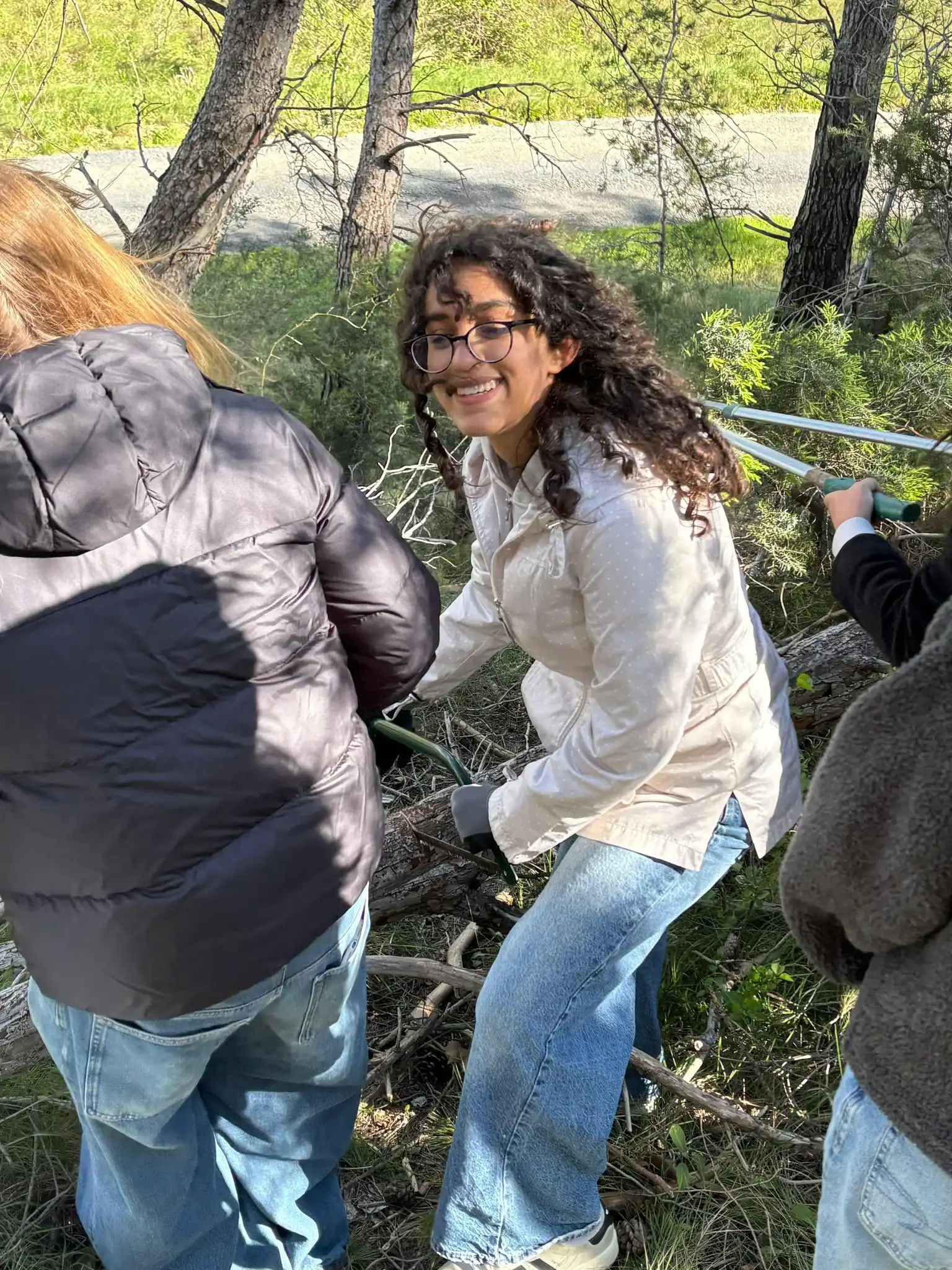 Today, we woke up in our host families homes after spending our first night with them. We enjoyed a nice breakfast with our families before saying goodbye to do some community service work! We went to the Chemin du Compostelle where we did some trail maintenance. We cut up felled trees using saws and pruners and put the branches into a large pile for removal. We worked very hard and did even more than we were supposed to because we got so into the project. Then, we went to La Cité, which is an incredibly preserved castle from the middle ages. There can be found mosaics from the ancient Romans, and crepes from the French! After our journey through time, we enjoyed a dinner made by our host families. Yummy! We miss our real families very much.