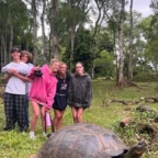 We arose bright and early at 4:30 in the morning. While many were tired, some were wide awake eager to start the day! After our morning routines, we hopped on the bus with our magestic bus driver Carlos. It was a short and sleepy drive to the airport. We safely made it through security and headed to Amazonía Café para comprar empanadas y café. Once we boarded our 4 hour flight to the Galapagos, we started doing henna, coloring, and reading to pass the time. After some turbulence, we made it to the Galapagos and exited the plane with the many other Hawaiian t shirt-wearing tourists. We then took a bus to a ferry, took a boat, then another bus to explore the Tortuga resort. The tortugas danced to the sound of our lovely guide, Patos’, voice. As we learned about these turtles, we had a lunch of pesto pasta. Then we departed from this beautiful species to go to a lava tunnel. Finally, we ended the night with a lil pool time and dinner, and clocked out at 9.