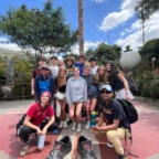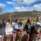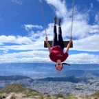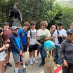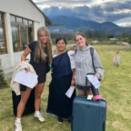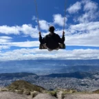 Today was full of fun adventures, bonding bus rides and four course lunches. During these we got to know each other, and form new connections. We started day 2 by waking up at 7:00am for our breakfast of fruits, eggs and a croissant. We then hopped on the bus and headed to our first destination, Pichincha volcano. We took a breathtaking ride up the side of a HUGE green gorgeous luscious mountain of trees. BUT… the mountain was in fact NOT a mountain at all. When we got we got to the top we discovered, the Lucious gorgeous mountain of trees, was a VOLCANO! After this SHOCKING realization we found it a great idea to hike to the top of said volcano. On the way of this breathtaking (literally) hike we were greeted by two beautiful fluffy clouds. But they were not clouds! They were… ALPACAS! These creatures were wearing authentic regalia full of vibrant threads and colors. At the top of the hike we found two swings – one thrilling, the other exhilarating, both intimidating-for they were hanging OFF of said volcano. After risking our lives, and breaking our comfort zone barriers, we hiked back down, hopped in the bus, and headed to our next destination, El Mitad del Mundo. This location is the center of the world with a latitude of 00°00’00”. We were lead through this incredible destination by a tour guide who taught us many things including the indigenous cultures and their customs; and the life of the Amazon. We also learned about how incredible this point on earth really is. After this, we headed to lunch at El Patio. This was an incredible experience where we ate food that was 40-70% cultivated in their garden right outside the building. During this meal, we were given 4 courses. Starting with a delicious soup, then a fresh garden salad, an elevated chicken and fries, and last but not least, a flavorful ice cream topped with rich dark chocolate and figs. Our next destination brought us to the downtown city of Quito. There we explored the Neo Gothic Cathedral and the Basilica. We then left Quito and headed back to our hostel. Once we got to our hostel, we had some down time and then had dinner of hamburgers, fries, and sodas! We discussed and created our group contract with our hopes and aspirations for our trip to come. New adventures await us to tomorrow as we step into the community where we will spend the next five nights with our homestay families.