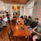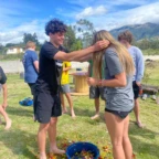By then, dusk had begun to fall upon us as the sun regressed behind the mountains and the moon arose from valley across, as the shadows turned into night. We all took the bus back to La Calera, had a quick debrief and reflection of our experiences that day, and returned to our host families for a freshly cooked dinner with homegrown ingredients. This consisted of an appetizer of sopa , soft and flavorful pollo, and a side of quinoa cooked with vegetables from the garden. After our bellies were satisfechos, some friends came over to play Uno, a homestay gift to our family, and played with our homestay brother. We then traveled to the house of other Global Works students and explored the village, guided by Justin, our 13 year old homestay brother. We returned to our respective houses at 10 so we could get a good nights rest for the upcoming plentiful day.
