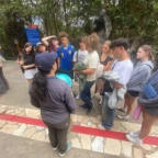 This morning, we woke up bright and early in our hostel and packed our bags for the busy day we had ahead. We enjoyed a breakfast of bread, scrambled eggs and a fruit and yogurt bowl (we are well fed here!). Then we said goodbye to the hostel and hopped on our magic school bus to travel to one of the largest street artisan markets in South America where we had the chance to haggle en Español with the artisans themselves. I, Camila, was able to haggle the price of a pure silver bracelet from $28 to $15 with my haggling rizz. I, Sophie, on the other hand, have negative Ecuadorian haggling rizz since my French skills surprisingly have little influence in this country. But don’t worry, I am actively practicing mi Español y estoy mejorando. Thanks to mis amigas I was able to purchase dos bracelets para $5. Poppy if you’re reading this you should be proud! I was also gifted a bracelet with an S bead from Sam so I’m building a stacked wrist. The market had clothing, jewelry, ponchos, and other handcrafts including a FC Barcelona Jersey with a cactus Jack sponsor on it.
