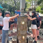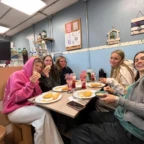 Hi gang. Coming to you live from an empty hot tub on the roof of our hotel, it’s Sophie and Max here and we back at it again. This morning, at the ripe hour of 6am we all waddled out of our rooms into our hotel’s beautiful dining room where we indulged in a breakfast that was filling for some, questionable for others. Sophie had three mini croissants and a fourth of a waffle with WAYYY too much marmalade (feeling like #paddington) and Max was in his hospital era with his regal chalice of strawberry (?) jello and French toast sponge (?) sweet tofu square (??) we don’t know. After breakfast, we loaded our stuff onto a bus to catch ferry number one! So close! Even though the bus ride was only five minutes when we got there there were about 500 other people in the same line that we wanted to be in which is #Tragic but it’s OK because change is part of the plan. So we stood there and waited in the line at 6:15 AM and the line moved pretty fast. We ended up getting on water taxi number one at like 7:15 AM. The way the suitcases were balanced on the edge of the boat made us all anxious that they were going to fly into the water and become fish food. #LooksLikeI’mGoingForASwim