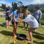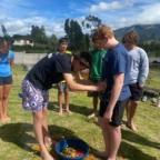 Then we went to the soccer field and played for around 3 hours while the food cooked. The little kids were team captains, it was gatos vs perros, after lots of playing perros won! Then it was time to go back to the comedor to reveal our lunch. We worked together to pull the food from the ground for it to be organized inside. When it was ready everyone lined up to fill their plate, it was an amazing lunch! After lunch we went to make jewelry, some of us made pendant necklaces and some of us made bracelets. We all went home to rest and help our families prepare food for our big and final dinner at the comedor. When we all arrived Isa led a salsa class before we set up for dinner. Once everything was set, everyone put what they brought on the table and everyone lined up with plates to get some of everything. We all ate at one long table and had an amazing time. To end the night with appreciation everyone said something sentimental to their families and received a hand made bag and some kind words. Lastly everyone went around the fire and had s’mores and lots of smiles.