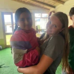 Camila and I are together with a family that has two cute young kids and dogs as well. Camila does all the talking for me. After we got to our house, we went through the backyard to another home that had a soccer field and we played soccer with a group of little boys, who were mucho better than us. We returned for dinner and we enjoyed pork, guacamole, rice, and potatoes. Then we winded down by playing Uno, escondido (hide and seek), and teaching the kids how to play Spot it. We were so tired after our long day but so excited to start working tomorrow.