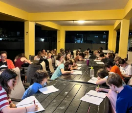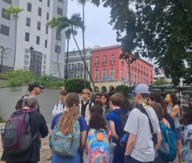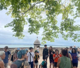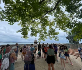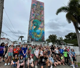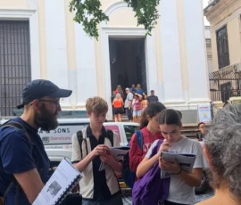 Tired from a long day of tours, heat, and walking, we took buses back to the Big Yellow House, where the traffic was arguably worse than Boston’s. During the last hours of light, we bathed in the sun while playing various group games. The sun set as we enjoyed flavorful rice, beans, chicken, and plantains. Finally, we closed the night with a group reflection about our day in San Juan, the lessons we learned, and the exciting upcoming activities of the rest of our Puerto Rico trip.