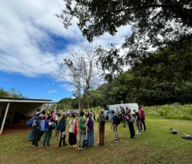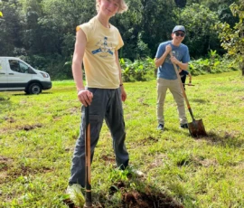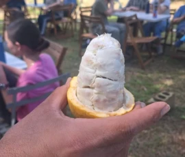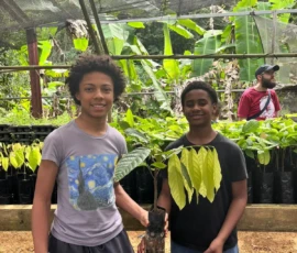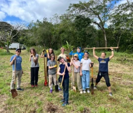 At 8am, we bussed to Finca Semila for a morning of service on the farm. We split into four groups where we engaged in various projects: planting peas, bagging dirt, helping create a wall of plantain trees and moving chairs for the afternoon lunch. After this, we learned about how cacao beans are grown and processed before trying some of the farm’s finished chocolate. We also took a tour of the greenhouse where we learned about the process of grafting a cacao twig to a seedling in order to maintain genetics and expedite the process of bearing fruit.