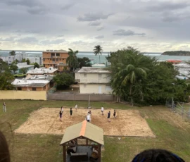 Our last day in Puerto Rico – today we made a lasting impact. We volunteered to help make the foundation of a house with concrete. After we packed up our things from the Big Yellow House and headed to our worksite in Via Del Rio we got quickly briefed on the process of building concrete foundations. We learned how to make concrete and not only did we make strong concrete foundations, we also made strong teamwork skills and friendships. We used a zigzag conveyor belt process where we would pass down buckets full of concrete to one another. It was messy but fun and rewarding. After our work period, we got served a home cooked lunch by one of the community members named Maria. After a day full of hard work we loaded up onto the bus where we had an hour and a half drive to the town of Luquillo where we checked into our hotel and settled in. Our last day in Puerto Rico was definitely a day to remember.