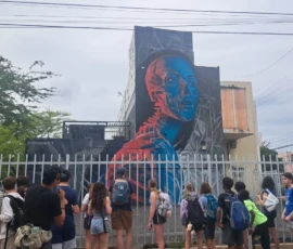 Santurce is a vibrant and deeply historic neighborhood of San Juan, whose colorful streets are painted with meaningful and symbolic murals. We were astounded by the profound nature of the murals, whose messages reflected the act of resistance from people all over the world against gentrification and other subjects.