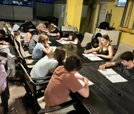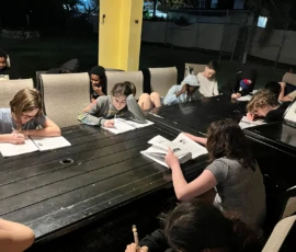 Everything went smoothly in getting to Puerto Rico. When we arrived, Global Works members greeted us and we piled into two buses to head over to the Big Yellow House. When we arrived at the Big Yellow House we had an orientation meeting with our Global Works team. After orientation we ate some delicious hamburgers before heading to our rooms to settle in. After we had some time to gather ourselves, we built our community agreements for our stay. When we were finished brainstorming, some of us walked to the beach. We saw three stray dogs. Once we finished our beach adventure we ate a traditional Puerto Rican meal of beans and rice, salad, and chicken. When dinner was finished we had an end-of-day orientation before settling into bed for lights out followed by a good night’s sleep.