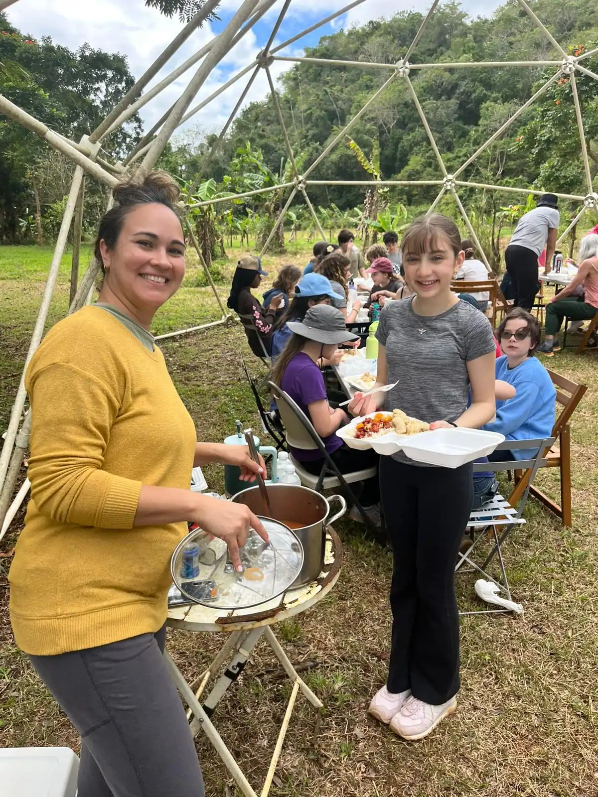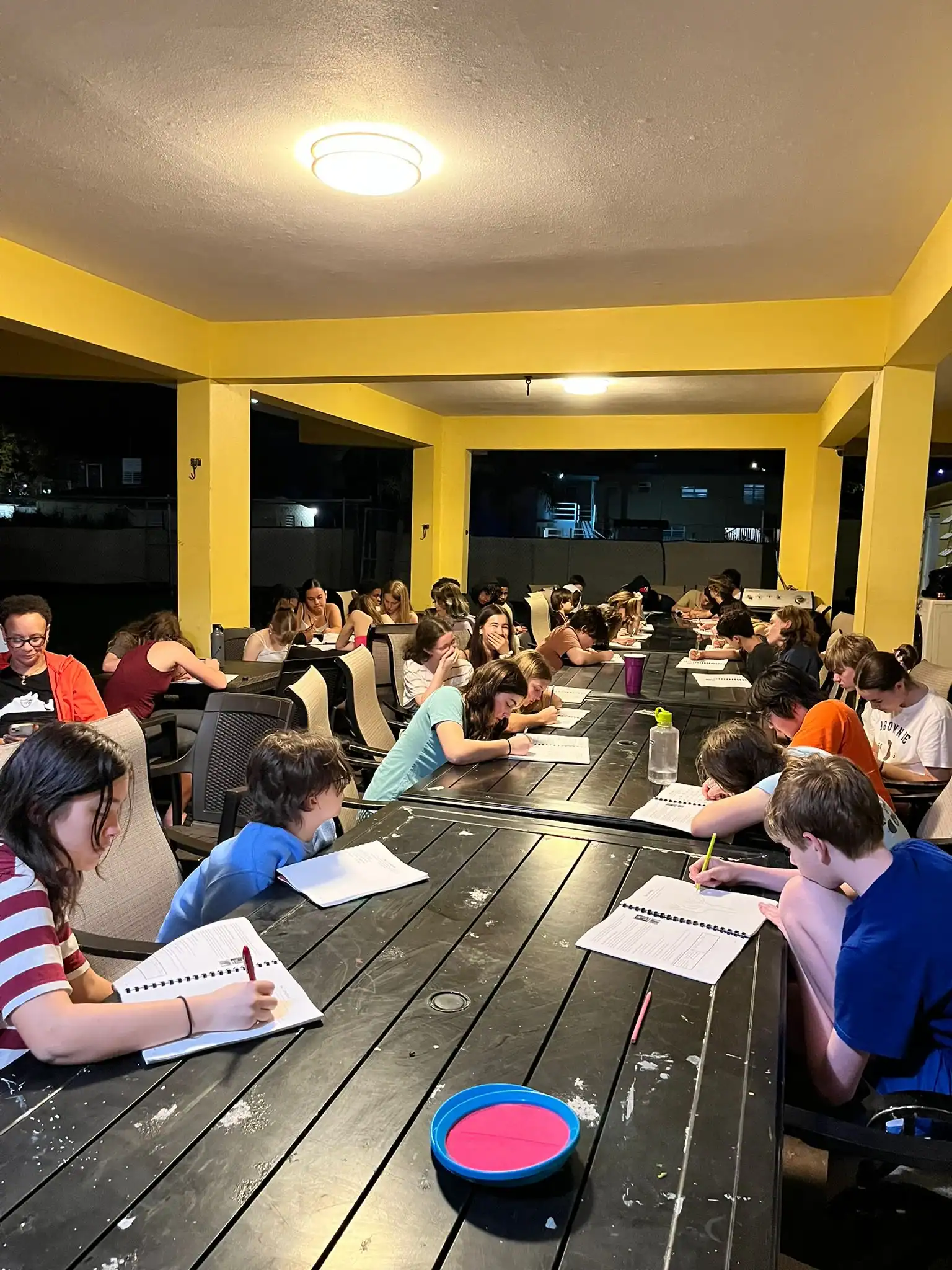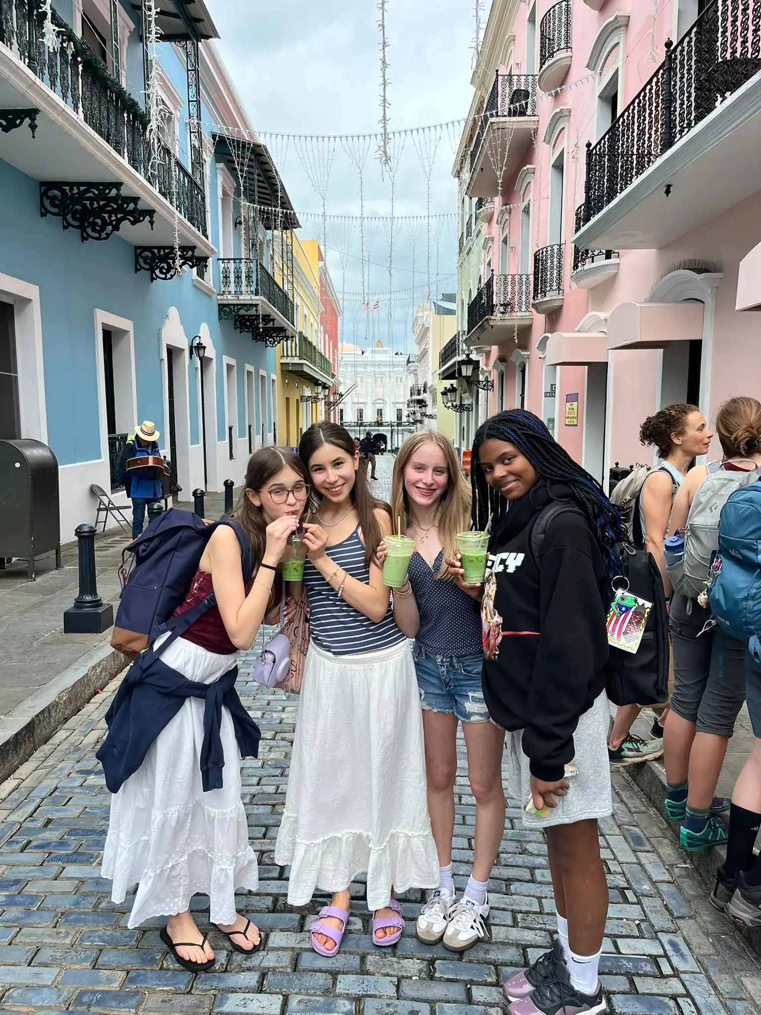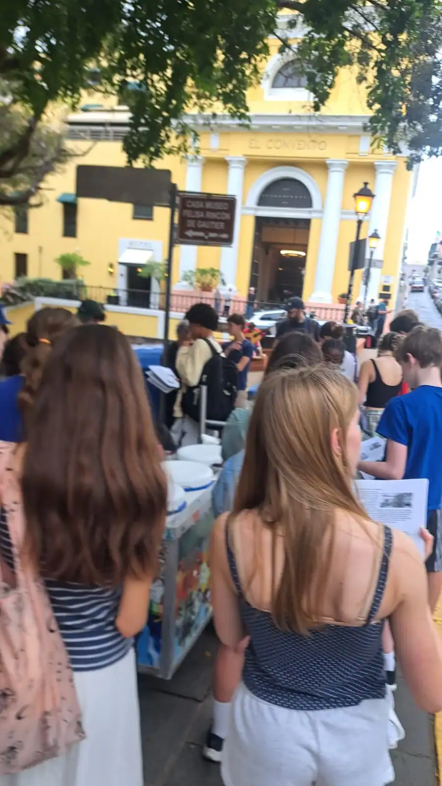 Tired from a long day of tours, heat, and walking, we took buses back to the Big Yellow House, where the traffic was arguably worse than Boston’s. During the last hours of light, we bathed in the sun while playing various group games. The sun set as we enjoyed flavorful rice, beans, chicken, and plantains. Finally, we closed the night with a group reflection about our day in San Juan, the lessons we learned, and the exciting upcoming activities of the rest of our Puerto Rico trip.