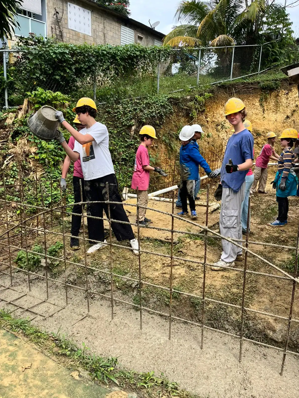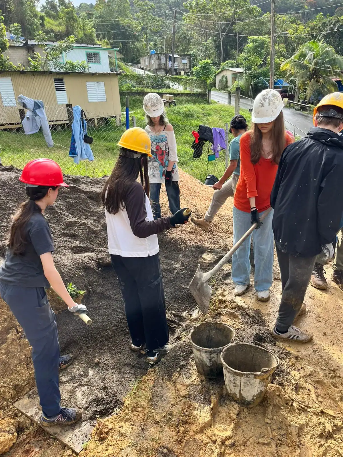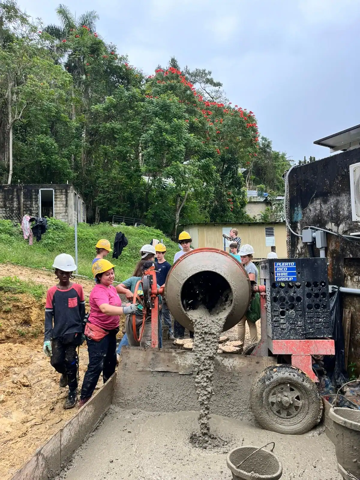 Our last day in Puerto Rico – today we made a lasting impact. We volunteered to help make the foundation of a house with concrete. After we packed up our things from the Big Yellow House and headed to our worksite in Via Del Rio we got quickly briefed on the process of building concrete foundations. We learned how to make concrete and not only did we make strong concrete foundations, we also made strong teamwork skills and friendships. We used a zigzag conveyor belt process where we would pass down buckets full of concrete to one another. It was messy but fun and rewarding. After our work period, we got served a home cooked lunch by one of the community members named Maria. After a day full of hard work we loaded up onto the bus where we had an hour and a half drive to the town of Luquillo where we checked into our hotel and settled in. Our last day in Puerto Rico was definitely a day to remember.