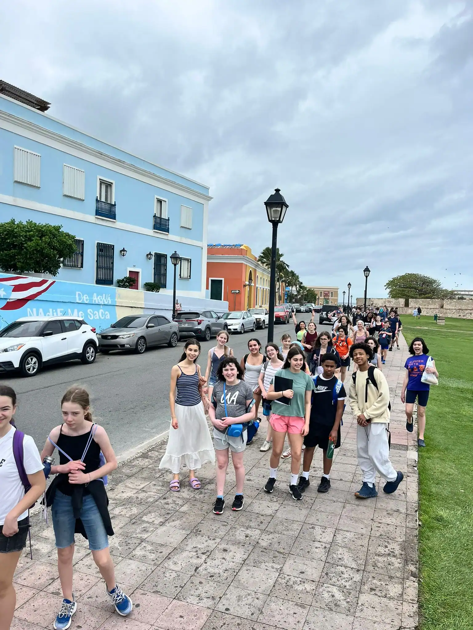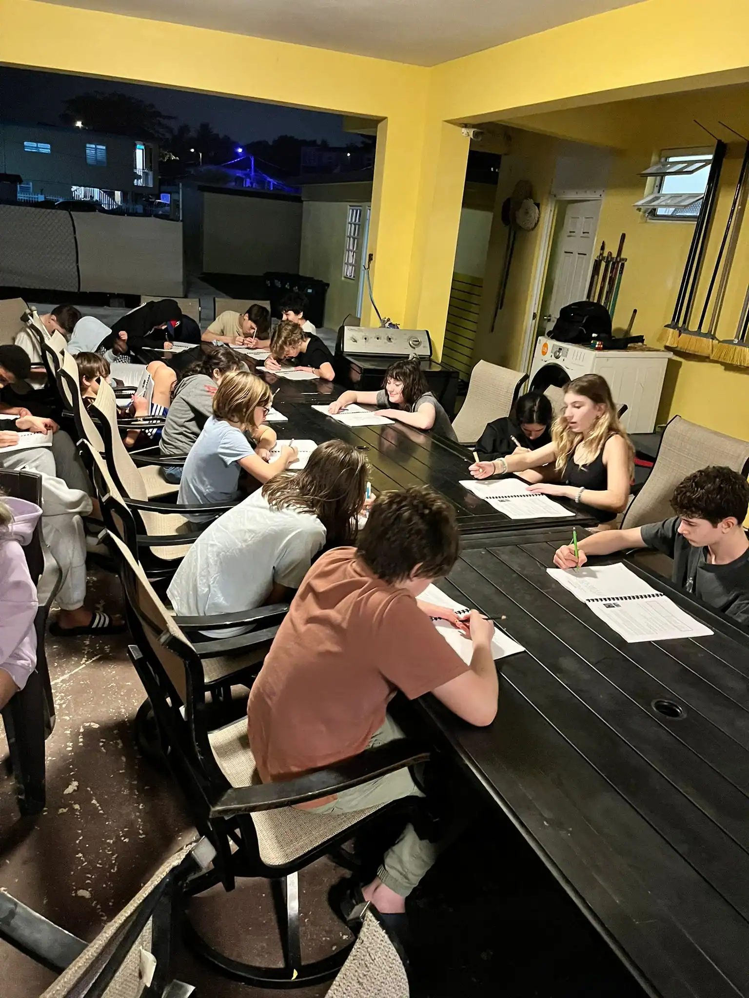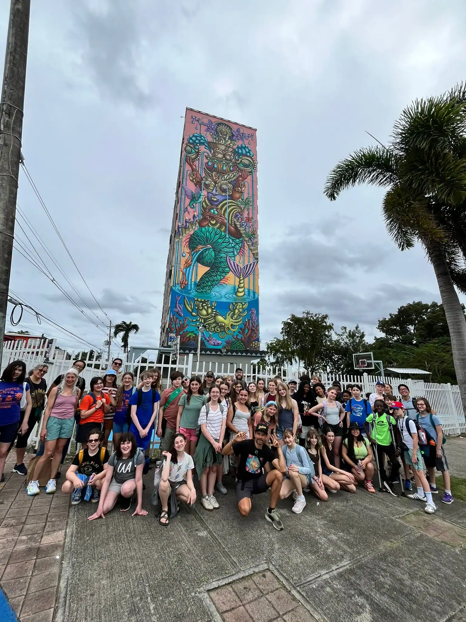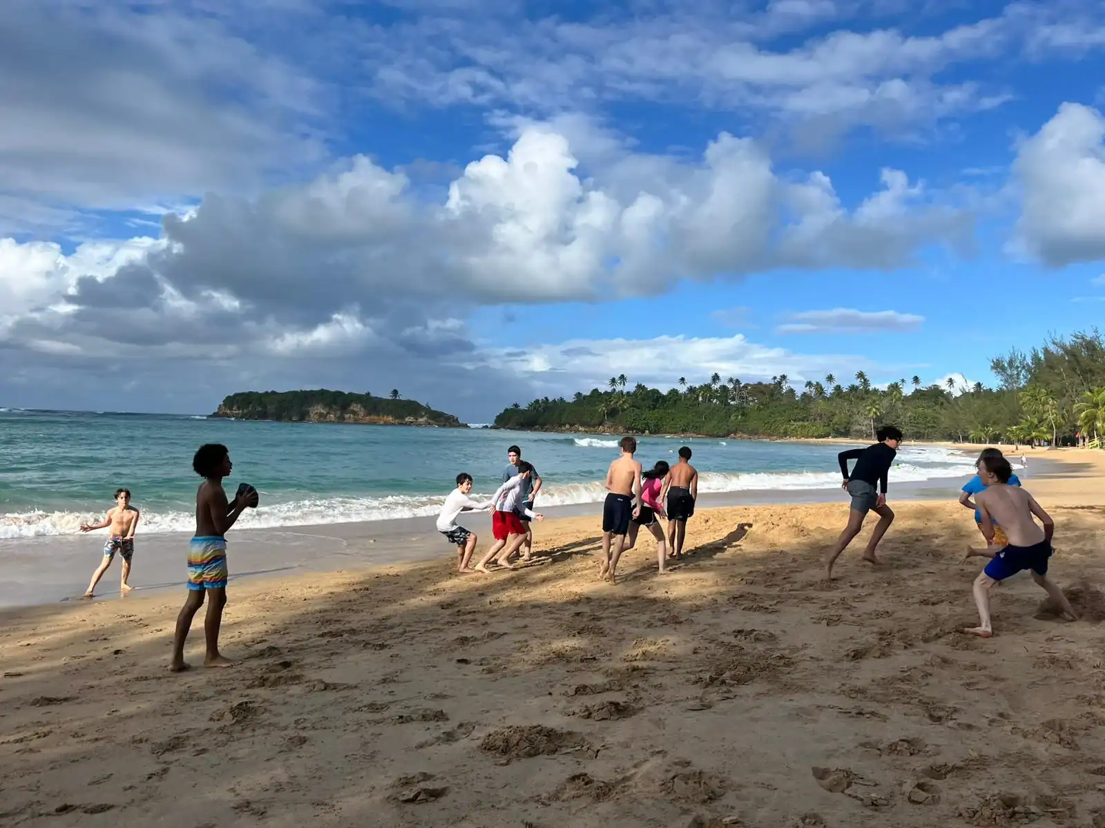 Our last day in Puerto Rico – today we made a lasting impact. We volunteered to help make the foundation of a house with concrete. After we packed up our things from the Big Yellow House and headed to our worksite in Via Del Rio we got quickly briefed on the process of building concrete foundations. We learned how to make concrete and not only did we make strong concrete foundations, we also made strong teamwork skills and friendships. We used a zigzag conveyor belt process where we would pass down buckets full of concrete to one another. It was messy but fun and rewarding. After our work period, we got served a home cooked lunch by one of the community members named Maria. After a day full of hard work we loaded up onto the bus where we had an hour and a half drive to the town of Luquillo where we checked into our hotel and settled in. Our last day in Puerto Rico was definitely a day to remember.