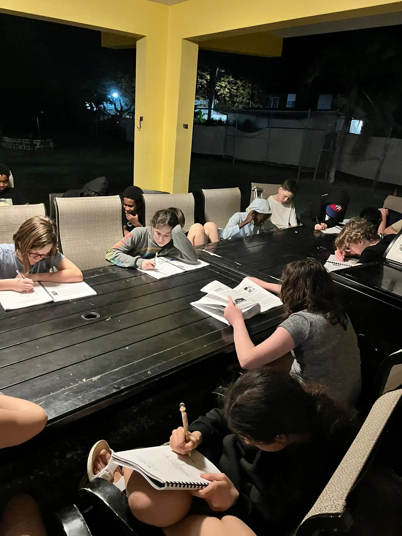 Everything went smoothly in getting to Puerto Rico. When we arrived, Global Works members greeted us and we piled into two buses to head over to the Big Yellow House. When we arrived at the Big Yellow House we had an orientation meeting with our Global Works team. After orientation we ate some delicious hamburgers before heading to our rooms to settle in. After we had some time to gather ourselves, we built our community agreements for our stay. When we were finished brainstorming, some of us walked to the beach. We saw three stray dogs. Once we finished our beach adventure we ate a traditional Puerto Rican meal of beans and rice, salad, and chicken. When dinner was finished we had an end-of-day orientation before settling into bed for lights out followed by a good night’s sleep.