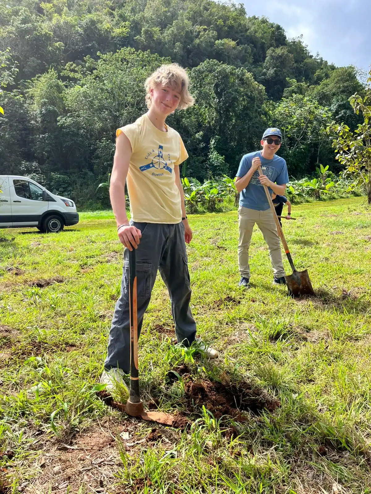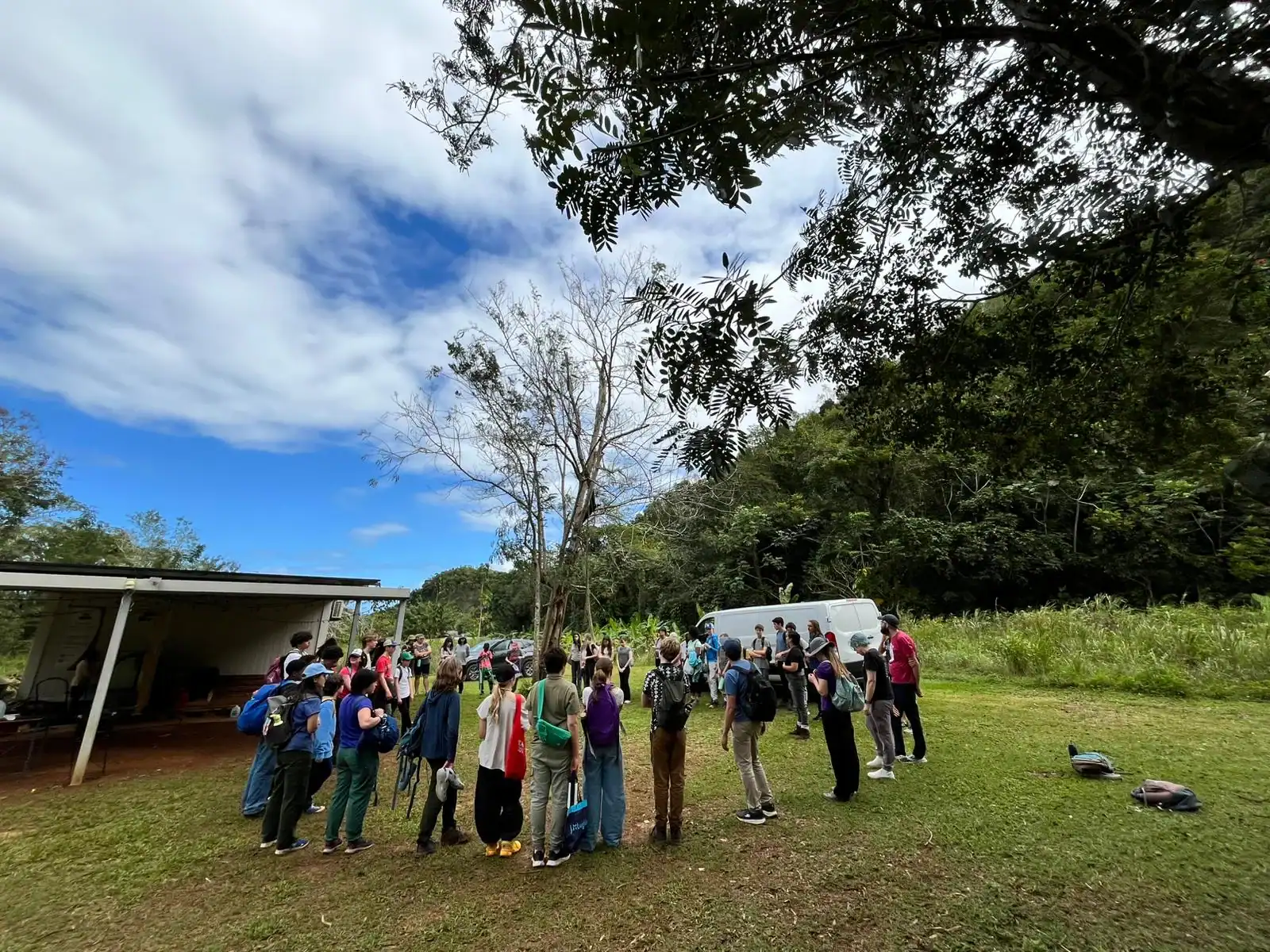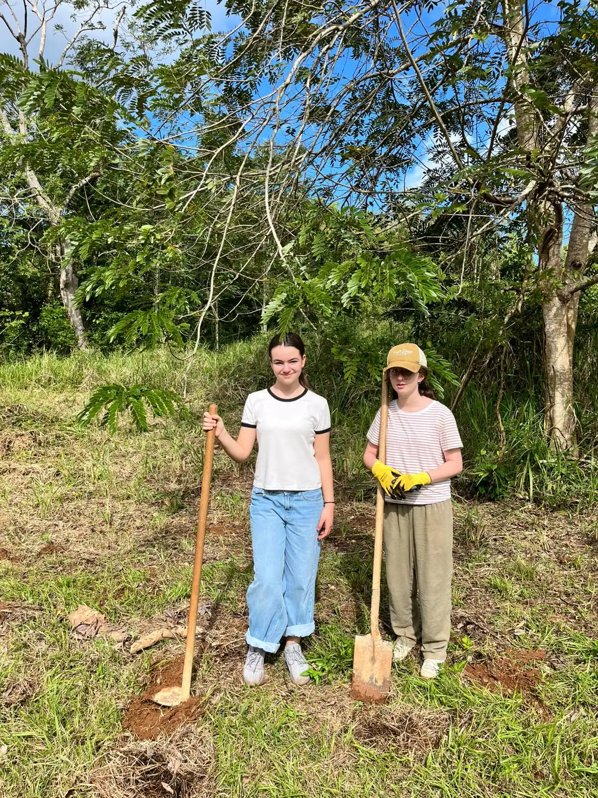 At 8am, we bussed to Finca Semila for a morning of service on the farm. We split into four groups where we engaged in various projects: planting peas, bagging dirt, helping create a wall of plantain trees and moving chairs for the afternoon lunch. After this, we learned about how cacao beans are grown and processed before trying some of the farm’s finished chocolate. We also took a tour of the greenhouse where we learned about the process of grafting a cacao twig to a seedling in order to maintain genetics and expedite the process of bearing fruit.