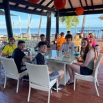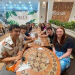 Afterwards we went to our rooms and relaxed on the beach by swimming. Although the ocean was a bit dirty, we still enjoyed the calmness. We also bonded over tossing a coconut and walking along the shore. We learned a lot about each other and grew close. Then before going to dinner we played a few rounds of rugby. Tim taught some of us how to throw the rugby and a couple of rules of the game too. The others who weren’t playing enjoyed the game “spot it”. Finally, we enjoyed dinner despite our tiredness, and shortly went to bed after.