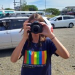 Cut to the top deck of the ferry, showing a group of our teens posing for a photo while another takes it.