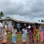 Bula! Today we arose at quite an early hour to the bumping music of our poolside restaurant, where pancakes were served as the main course, with a side of aggressive slapjack. We then hopped on the bus for our long seaside journey. Along the bumps of the bus, came the heated games of spot-it and crazy 8s. Our first pitstop was a gas station filled with aisles of endless snacks and goods. Later we arrived to a spectacular view overlooking the blue Fijian waters. When our stomachs finally started to settle from all of the snacks, we were greeted with a delicious curry lunch. Followed by shopping for Sulus and visiting the Raki-Raki local market. We then began the last leg of our journey. Soon arriving at Nativi village where we were greeted with spectacular views and wide smiles from the children of the village. We then prepared for the welcoming ceremony (Sevu-Sevu) that encapsulated drinking Cava (makes your tongue a little numb) from Bilos while rhythmically clapping that concluded in accepting us into their community and the warm greetings of our host families. After exploring our homes for the next five days, the village children instantly surrounded us and eagerly toured us around the village. We then returned to the community hall where we played a big paddy cake game similar to concentration. This was soon followed by tea and snacks before heading back to spend quality time with our host families before dinner. Plates kept being placed in front of us and each one was better than the last. Our day ended with a closing circle of our favorite parts of the day.
