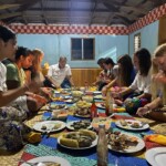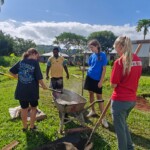 Bula! Tap tap tap mo mo mo bark bark cockle doodle do. We awoke to the sound of rain on our tin roof. We emerged from our bug nets and immediately put on our sulus. After our delicious breakfast on the ground of our community center, we began our first day of service. This included a quick Adam Sandler-esque fashion show of knee length shorts and elbow length shirts. We slapped on our gloves and began jumping on our shovels in order create holes to put up a new fence around the kindergarten. The bugs were biting to say the least but we didn’t let them stop us! After a couple of breaks and some good laughs with the locals, we finished our first shift of service and headed to lunch. After lunch, we got back to work painting the school. Again we were fed with tea and made yet another friend (pussy the cat). Now that we were all fueled up we began an intense volleyball match. We soon realized we are a very competitive bunch. Games of duck duck goose and netball were played and everyone was having a grand ol’ time. As we went back to our homestays, we all had a unique shower experience before making our way back down to the community center for dinner. After the meal, the town elders taught us to weave mats, bracelets, and fans. Exhausted, full, and happy. We were excited for the week to come and we rustled straight back into our beds and strapped into our bug nets.