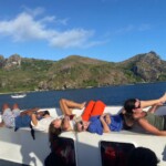 BULAAAA!! We are officially fluent Fijian speakers. We woke up at the crack of dawn and dragged ourselves out of bed for a sunrise swim. It was not easy, but it was our last day at Barefoot Manta and felt fitting. We then headed to breakfast where we waited for omelettes and pancakes to arrive . After our large breakfast we headed back to our favorite beach to soak up as many rays as possible before we have to depart ️ ⛱️ . After most people finishing their beach reads. We take one last dip in the ocean before heading to our last buffet that consists solely of curry (like usual) . After lunch we were serenaded by all the local Fijian workers as our final goodbye . We took out last barefoot walk along the beach before getting on to the boat. We obviously got seats on the top deck. The boat ride was quite bumpy, but after 3 hours, we made it back to Nadi. We took the short bus ride back to the Beach Escape Villas and then sat down for a nice dinner while watching a Fijian fire dance. It was an incredible experience to close our second to last night here in Fiji. See you tomorrow for our very last day