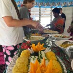 Bula everyone! We woke up to the birds chirping and the waves crashing. In the early morning, we headed to the buffet where we ate traditional Fijian foods and various native fruits. All of the scuba groups then got ready to go scuba diving. We went to scuba in three groups and all went down to 18 meters. Virginia U. and I, who are in group 2, saw various coral and fish of many colors. After the dive we all took our gear off and got cleaned up to hang out for the ready of the day. Lunch was a delicious buffet and much needed. There was bbq, fish, and fresh salad. As the day went on we played volleyball with other people at the resort and the staff. After a stressful volleyball tournament we headed to dinner. Tonight, the resort had ‘Fiji Night’ where we ate traditional foods, drank cava, and celebrated this beautiful culture. We danced and sang the night a way. Cheers to another great day in Fiji.