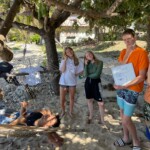 As the clock struck 4, we had our favorite part of the day, Tea Time! We enjoyed cassava pie ( no idea what’s in it but it’s scrumdiliumcious) and tea. Craig, our leader, took drone footage while Tim warned us about coral cuts. A few of us “decided” to get cut in the coral and a worried Tim gave us a ‘Tim Lesson’ and said we no longer shall let the coral cut us. Tim took care of the cuts and we continued to read till dinner.