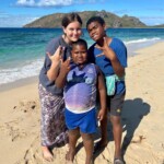 After 11 plus hours of traveling, we arrived in Fiji! We sadly turned in our phones. Then we headed to the local market, we drank coconuts, and ate pineapple and papaya. Then we went to get breakfast. We had an amazing view of the water. We swam for hours in the ocean. The beach is so beautiful! We showered and then hit the town. We bought souvenirs and sulus. Sulus are the skirts we will wear in the village. We went back to the house to meet the rest of our group. Some of us went back to the beach to swim more! After that, we had dinner. Then we went to bed!
