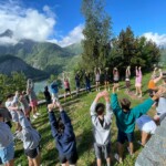 Today, we got to have a nice sleep in after yesterdays hike. We ate a delicious breakfast made by Raphäel and Stephanie. After, we had a group stretch led by Max. Then we started our hike to the glacier lake to swim! Edwina was able to accompany us today (even though she has a sprained ankle) which was really exciting. We stopped at a lake and took in the breathtaking view as we ate our lunches. After we continued our hike and eventually made it to the glacier lake! The water was freezing but it was super fun. After a very steep hike back, some kids went to do service work with the sheep. They carried heavy bags of salt and helped out the shepherd a lot. Today was Cal’s birthday so at dinner we all celebrated and had a really delicious cake. For our evening activity we burned away our negative self beliefs into a bonfire and really took the time to reflect on ourselves. Even though everyone was exhausted from yesterdays hike, we still managed to have a great day.