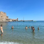 Bonjour! Yesterday was the day we had been waiting for… BEACH DAY!! The day started with a two hour, very relaxing and scenic, bus ride. Some people slept and others didn’t, personally I did. After the ride, we arrived in Collioure, and headed directly down to the Mediterranean. Our leaders showed us our boundaries and then sent us off for free time until two. Each of us split into smaller groups but would constantly run into each other as we explored. The stores were so cute (I bought a ring which I was excited about) and everyone got lots of ice cream. Ellia did eat three ice creams while we were there:). At one, the group made its way back together and decided to swim before our walking tour at two. We played volleyball and football in the water and stayed very cautious while walking because of sea urchins (which quickly became everyone’s new phobia… especially Javie who refused to let his feet touch the ground). Then we had our walking tour where we learned a little bit about the history of Collioure and some artists in the area. We also walked into this amazing church with wooden carvings painted in gold (we also enjoyed the fact that it was nice and cool inside the church). After the hour, we got one more hour to explore before our bus ride back. We all did more of the same, walking in and out of all kinds of stores and galleries (Ellia, Caroline and I found this very cool street full of art galleries, each selling a different style of art). After we said goodbye to the Mediterranean, we headed home to get picked up by our host families. When we arrived back, Ellia and I were picked up by our host mom and went home for a quick turn around before going out to dinner. We went to Douzens and met up with Pauline and Alessandra. There, we ate dinner, danced and listened to music. It was a BLAST! Then, at 12:30, we finally made it home and fell right to sleep. It was such a great day!