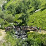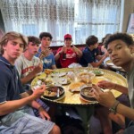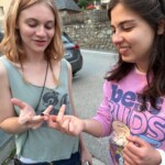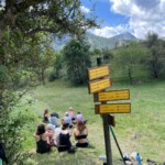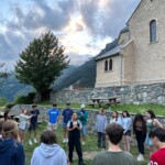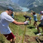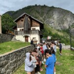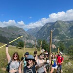 Today we boarded our crowded trucks and ventured out on an all day service hike up a nearby mountain. We put on our work gloves, hiking boots, and good attitudes, and grabbed our tools. Our generous guides, Marie, Laurent and Febreeze, led us up the steep mountain, covered in rocks, grass and pretty flowers. We stopped at various points to move rocks into walls, widen paths, and cut branches. We paused at a plateau with a beautiful view for our picnic lunch, and admired the scenery while we ate our sandwiches. Then we continued up, some turning around to go back down at a relaxed pace, while others reached the summit. “The view was breathtaking; the snow capped Alps overlooked the majestic glacier river, which sparkled in the afternoon light,” a student exclaimed. After scaling the mountain, we returned down, and went back to the gite. After a delicious lasagna dinner, (which made Max realize he actually likes lasagna,) and fruit salad dessert, we played a fun game of mafia, and dispersed into free time.