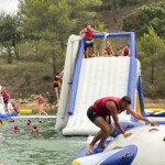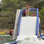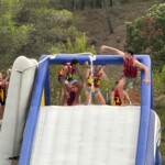Next, we walked all the way over to the other side of the lake to get strapped into our life vests & to jump into the water. I loved the water gym! There was this tall tower where we jumped off into the lake. Some people did impressive flips while others just jumped off with their best screams, but we all had fun! Another part of the course was (in the best way I can describe this) a blob thing. We would all try to run up the blob, but we would eventually all fall back down. Sometimes, more then not, we would fall on each other forcing ourselves to fall into the lake.