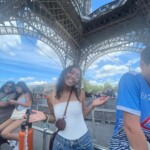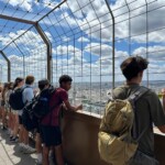 Yesterday, it was finally time to climb up the Eiffel Tower. We took the metro to the Trocadéro plaza where we all took a group photo to celebrate our French adventures. Then we walked to the tower and stood in line to get tickets. The wait was long and I was eager to get to the top. Then we started our way up the stairs. On the first floor, some of us bought a pizza and shared it. Now we can say we ate pizza on the Eiffel Tower! We walked up another flight and then got on the elevator to the top. We enjoyed the amazing view of all of Paris. It was stunning. After taking it all in we then went back down the stairs to go sit on the grass and admire the tower from down below. It was cool to get two different perspectives! We also learned that someone is legally married to the Eiffel Tower We went to a grocery store to get some food for a much deserved lunch and then quickly headed into the metro to the Louvre. We went through the museum which was easy to get lost in but worth it. It was so beautiful. Then we went for a stroll through the Paris streets and did a little shopping. After all the walking, I was glad to get back to the MIJE for dinner and a quick rest before our final event of the day, The Arc de Triomphe! We climbed up to the top of the arch and when we got there we watched the sunset. Some people chose to walk back and some took the metro. On the walk back, we got ice cream and even went to a fair for a couple minutes. It was a really fun second to last day!