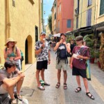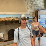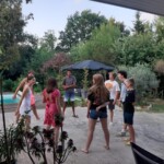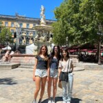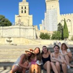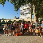 Today, we said goodbye to Anne, our host at the Gite, and boarded the bus to Avignon! We played games and made friendship bracelets throughout the traffic, and stopped about 2 hours in for a lunch and snack break. We all ordered hot dogs and rejoiced in the rest stop food, then rode another hour to our destination in Avignon. We got to live the true southern french experience when we waited for the shuttle to the city (under the sweltering heat) only to be stood up, but we got to see some beautiful views on the walk instead!! We entered the walls of the city and saw the theater festival in full effect – glittered faces, lit up carousels, artisan stands and ice cream for days. We walked through the Palais de Papes with our tour guide Francois , who told us all about the gardens, the mosaics, and the living quarters of where the pope lived. After that, we took a crepe and ice cream break, and watched all of the street performers while munching down!! Then, after we went souvenir shopping and viewed the Pont d’Avignon, we ate and amazing dinner full of steak and ravioli and even beef tartare (that one took some convincing). finally, We wrapped up our night by learning all about the family’s that will be hosting us and playing games at the hotel.