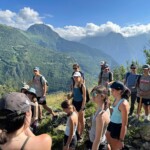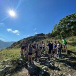 This morning, we started our service work again on the mountain. This time we drove close to the summit and hiked down. Some of our service work included carving stairs into the hillside with hoes and picks, creating rock boundaries for the path, and marking the correct way with cairns. After a relaxing but hot lunch break, we went down to reassess the handiwork and continue on our way down the mountain. The trucks met us closer to the bottom and we all went back to take some well needed showers. We got back from service earlier than we expected so we had many hours of free time to call home and relax before dinner. We had a delicious dinner of chicken and ratatouille (very French!) After dinner we had our first official French lesson taught by Edwina. We practiced directions, verbs, useful terminology, and numbers. Jorge then led us in a group stretch and we started planning for our big hike tomorrow. We ended the night with an activity led by our student leaders of the day where we played music and had to guess who chose it. Our term of the day was mainly “Je suis en forme” which translated to I am ready/feeling good. Au revoir!