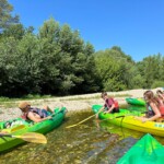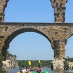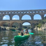 This morning we woke up early and left the YMCA for our kayaking trip on the Rhône. After a short intro on the techniques of kayaking, we headed down the river and navigated through lots of seaweed and swimming people. Along the way we saw the impressive Roman aqueduct, called le Pont du Gard. To cool off, the group swam in the river while locals were cliff jumping into the water below. After our adventure, we boarded the bus to meet our families who would be hosting us for the next week. We met at a park and indulged in food before leaving for our homes for the next week.