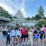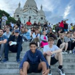 After a long day, some of us extravagant explorers journeyed to Montmartre. We took the metro and endured a sweaty, crowded ride. When we got to Montmartre, there were a lot of stairs to climb but it wasn’t that bad. The reward was worth the strenuous endeavor. We were presented with a gorgeous panoramic view of Paris and we sang along with a French guitarist performing up there. After, we went into the basilica and heard some lovely voices singing hymns in French. We then strolled through la place de tertres where we made acquaintances and enemies by waving at random people. Then we got gelato from Amorino that was shaped into flowers. We are now on the lovely sweaty train again and we are subway surfing our way back to the hostel so that we can get a lovely nights sleep.