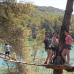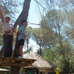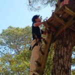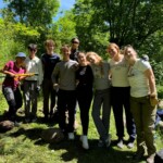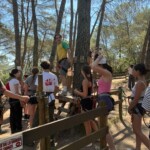 Today we awoke in our respective families homes, greeted by the morning sun. We each had breakfast with our families, mine consisting of leftover apple tart, courtesy of desert the night before, crepes and bread with various spreads. Once breakfast was finished, we started the trek towards the meeting place for the day. The plan was that in the morning we would do a high ropes course which our families were welcome to join, and in the afternoon start our service work; clearing paths and building stone walls to help attract visitors for a castle that has been protected but run down for years now. The ropes course was amazing with a zip line across the lake that we will be swimming in tomorrow, providing a beautiful view. When we ran out of time, we sat and ate the individual lunch that our host families kindly provided. Delicious!