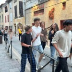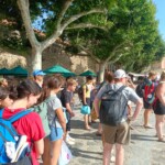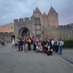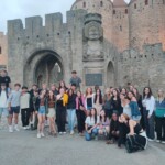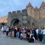 After some of us got mauled by adorable kittens, we enjoyed a classic French breakfast provided by our respective host families. Today is le 14 juillet, Bastille day (the French Fourth of July), commemorating the day that French revolutionaries stormed the Bastille in Paris, one of the last strongholds of the monarchy. Today the French celebrate their liberty from oppression of their sovereigns with music, dance, and most importantly, food. Since Carcassonne is known for its fireworks, the streets were crowded by 4pm with people waiting to see les feux d’artifices (the fireworks) and store venders with street booths sold a variety of French foods and carnival goods. Around 7pm, we made our way to the bridge with a clear view of the castle where the fireworks would take place. Since the spectacle wasn’t until 10:30pm, we could pass the time by playing cards, reading, and making up various games. When the fireworks finally started, we all watched with wonder as the fireworks soon illuminated the sky [insert firework sound here] and left behind a smoke of red. When it was over, many of us finished the night at a concert a few streets over where a French band rocked out. We danced the night away until well past 1am, leaving us bright and energetic for our next day of travel.
