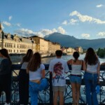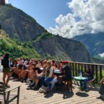 It’s Day 7 without our phones and somehow, we are still alive. Early risers made coffee, while at 7:15 the rest of the bunch was awakened to the towering outline of the Alps. Water bottles were grabbed on the way down for breakfast by those still alive in our game of “Assasin”. They were their immunity against their anonymous “killers”.