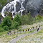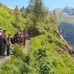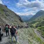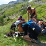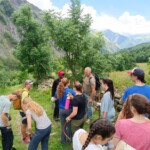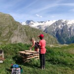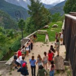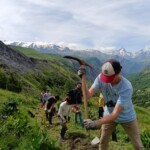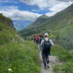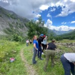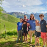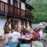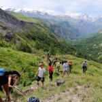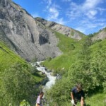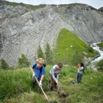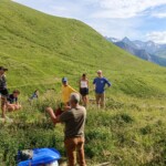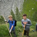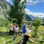 Though it was definitely hard work, we had beautiful views of the Alps the whole time, and were surrounded completely by a beautiful alpine forest and meadows. After two to three hours, we sat on the trail, surrounded by nature, and had a delicious picnic lunch. During and after lunch, the group played games, talked, and hung out-everyday we feel more and more like a team. Before packing up and heading to our second worksite of the day, we got a little lesson on the flora of the area from one of our local guides, Marie. As someone who’s interested in ecology and forestry, the locals we’ve been working with have been indispensable resources. They’ve also been engaging and interesting the whole time. If our first worksite was beautiful, the second was stunning: waterfalls along the trail hundreds of feet high, amazing vistas of the mountains, and alpine meadows blanketed with flowers of every color and shape imaginable. At this worksite, we were clearing and repairing an old trail which had fallen into disuse, with the permission of the mayor of the nearby village. As we uncovered more and more of the trail and climbed higher and higher, we were met with those stunning views at every turn of the mountains, the valley, and the river. The chain of mountains on the other side of the valley from us even had snow! When we left the worksite to return to our lodge in Mizöen, the satisfaction of walking on trail we had cleared and shaped was awesome, and almost made leaving worth it. After seeing how amazing the view and the environment was there, I don’t have the words to describe how excited I am for our long hike up the mountain to the refuge. I can’t wait to go back tomorrow, and work on that trail again!